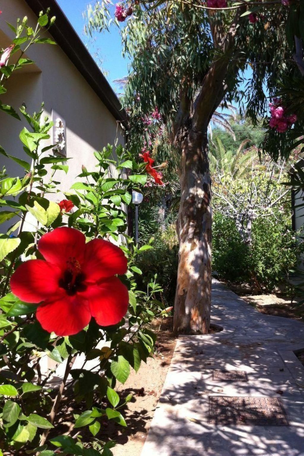 The detached bungalows in the park are surrounded by Mediterranean vegetation such as palm trees, oleander, hibiscus, eucalyptus trees and much more (see sample photos on the Internet presentation).