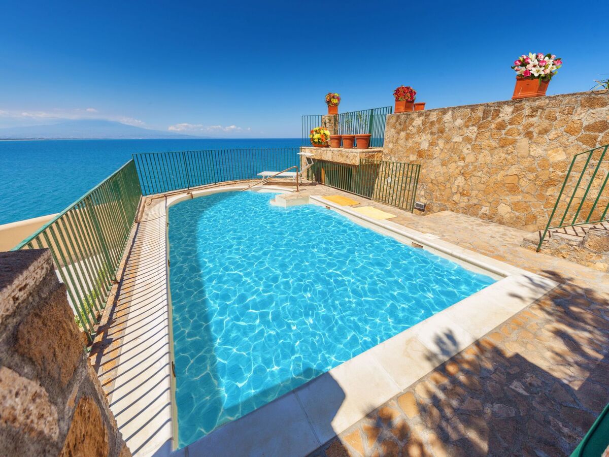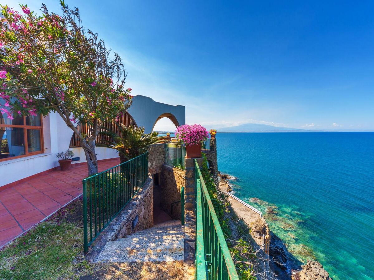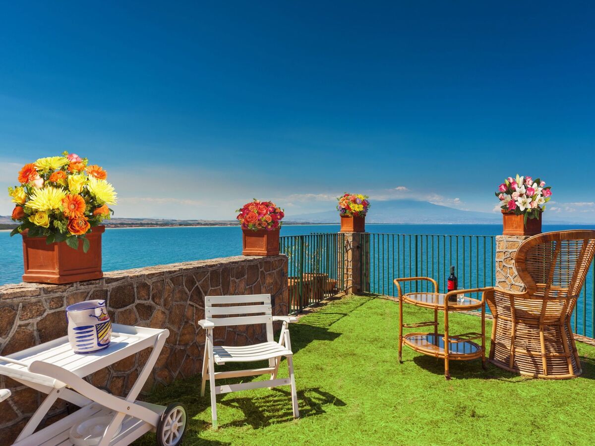 The exterior of the villa is an embrace to the Ionian coast with one of the best ever Sicilian panorama.