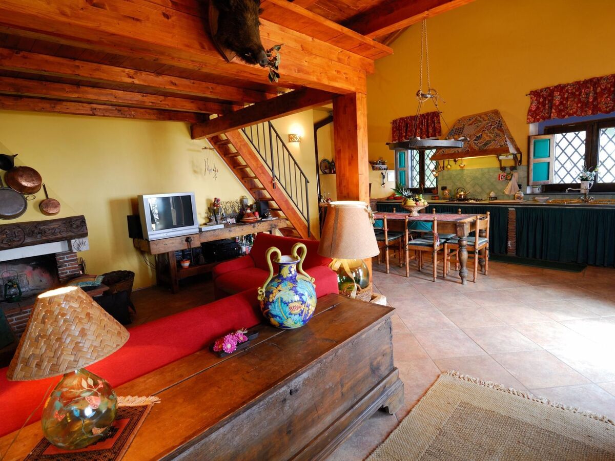 The rural building has a sleeping area, a large living room with a large kitchen, a characteristic stone oven and a fireplace.