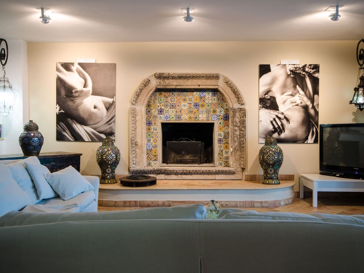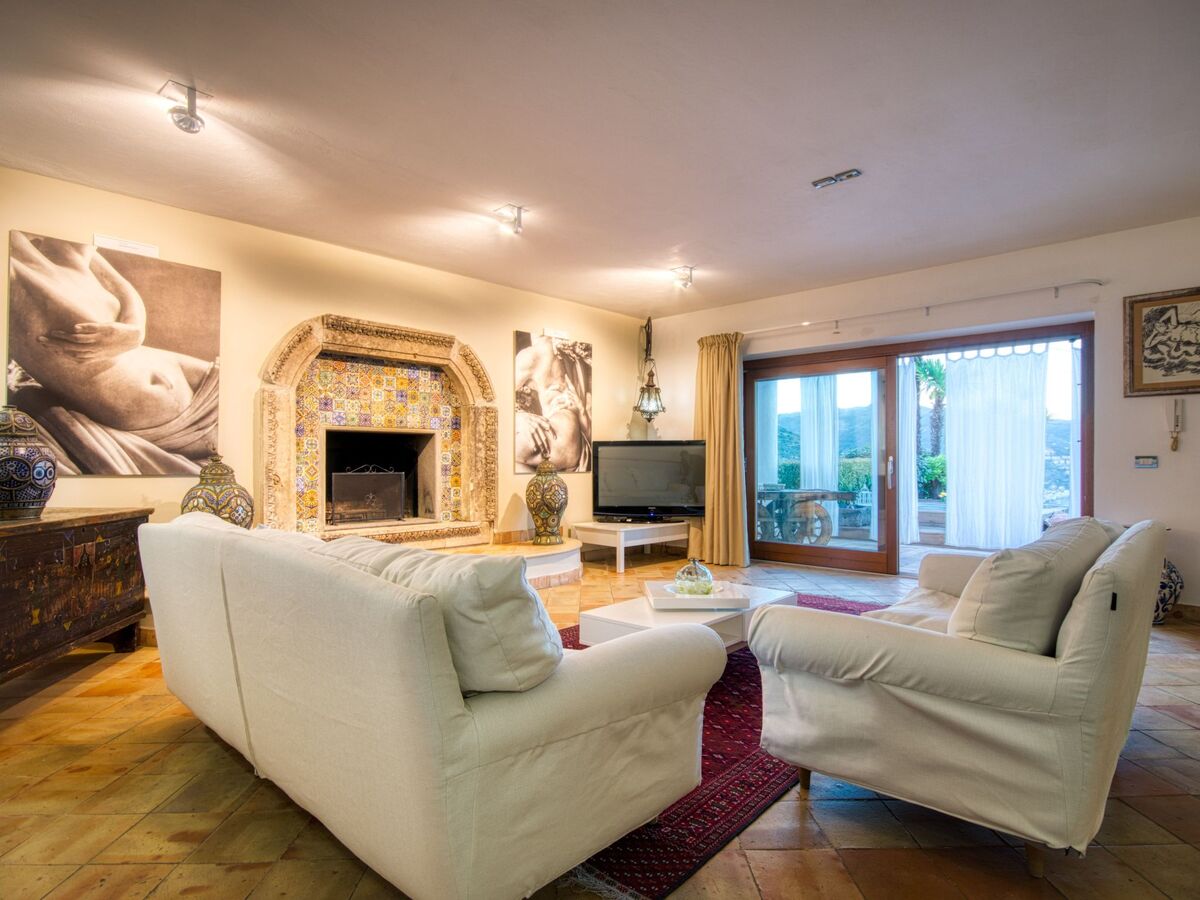Large and communicating rooms on the ground floor with dining table, chairs, sofas, living room with a wonderful fireplace and flat screen TV with satellite channels, free Wi-Fi throughout.