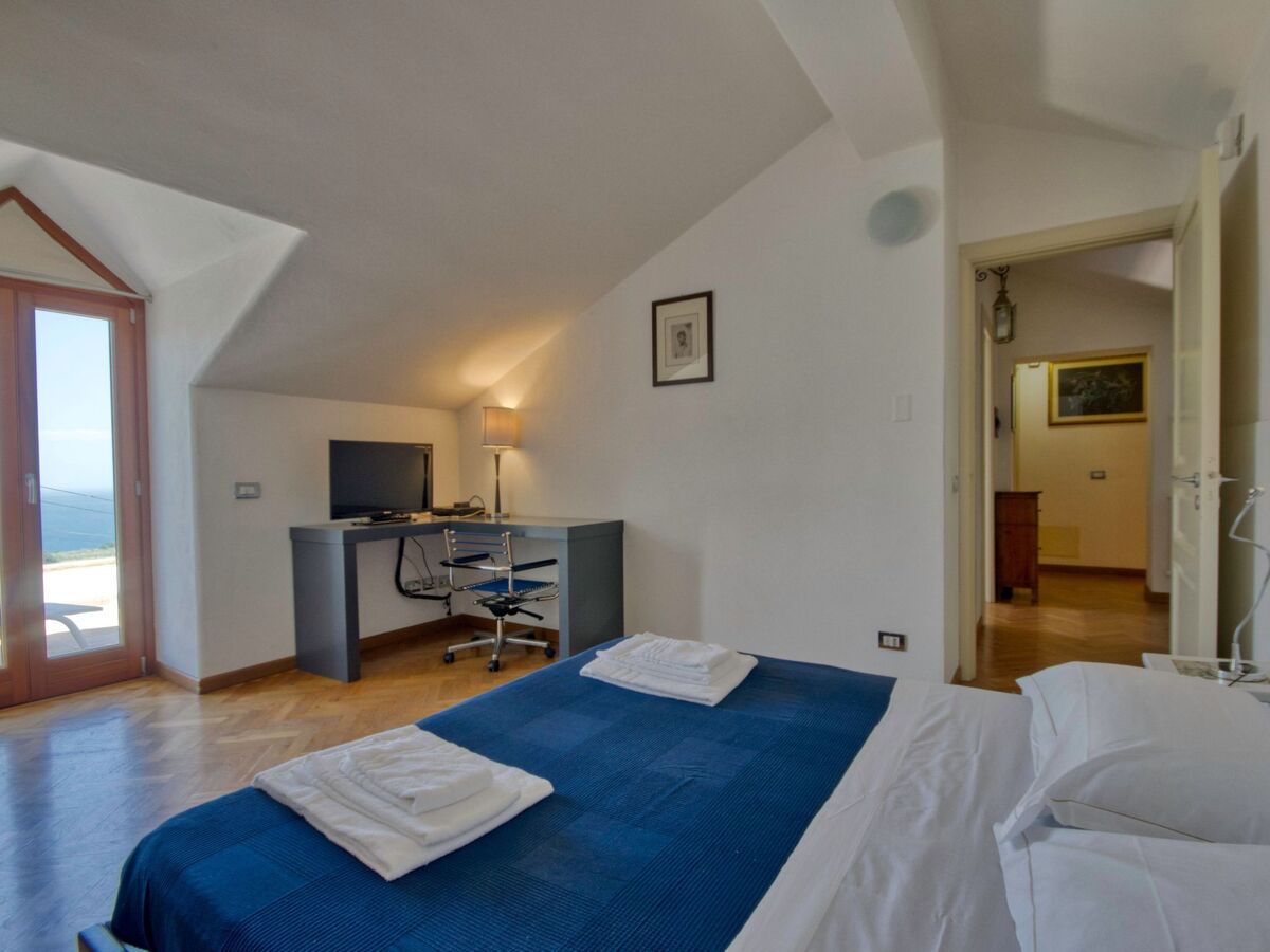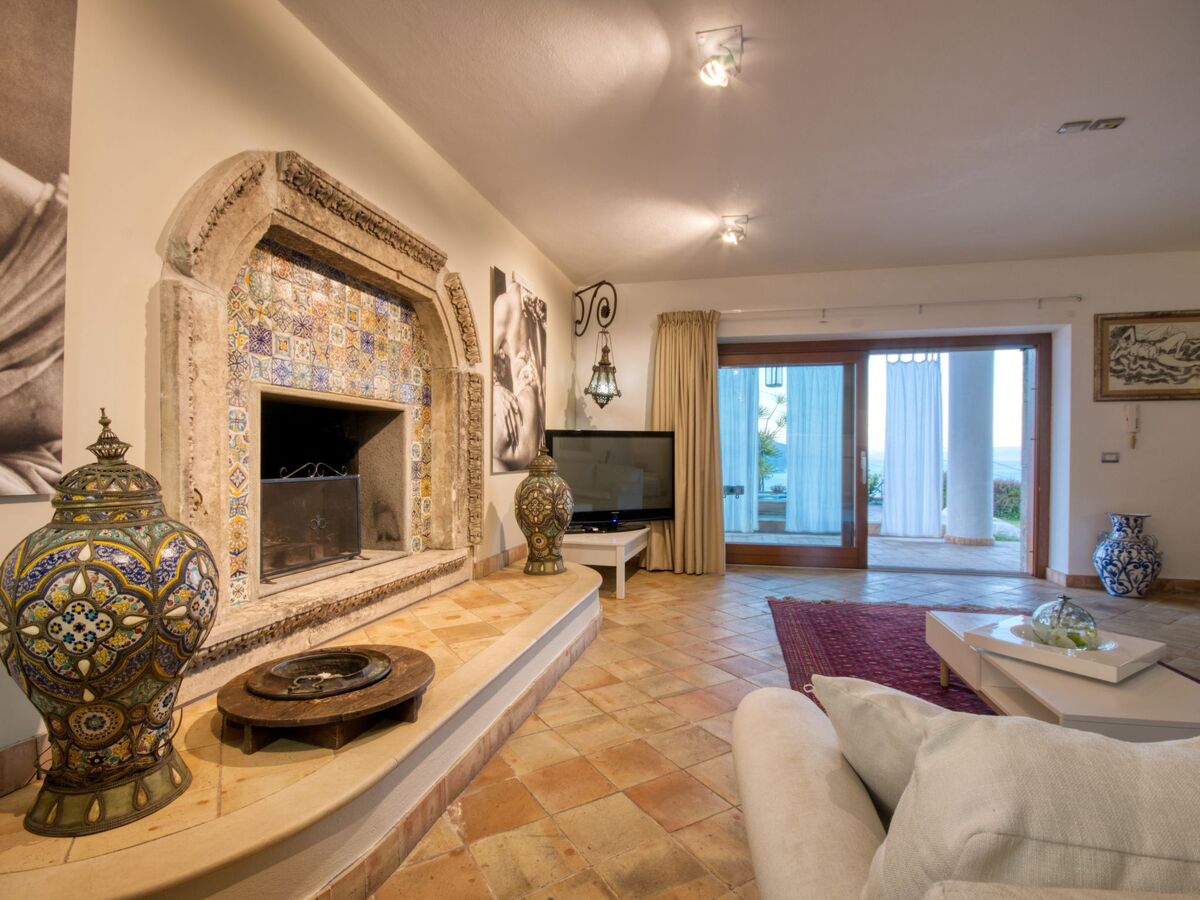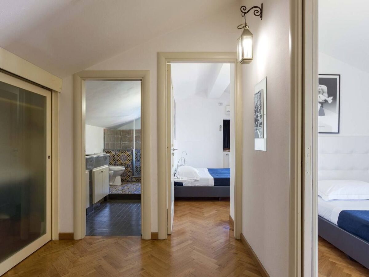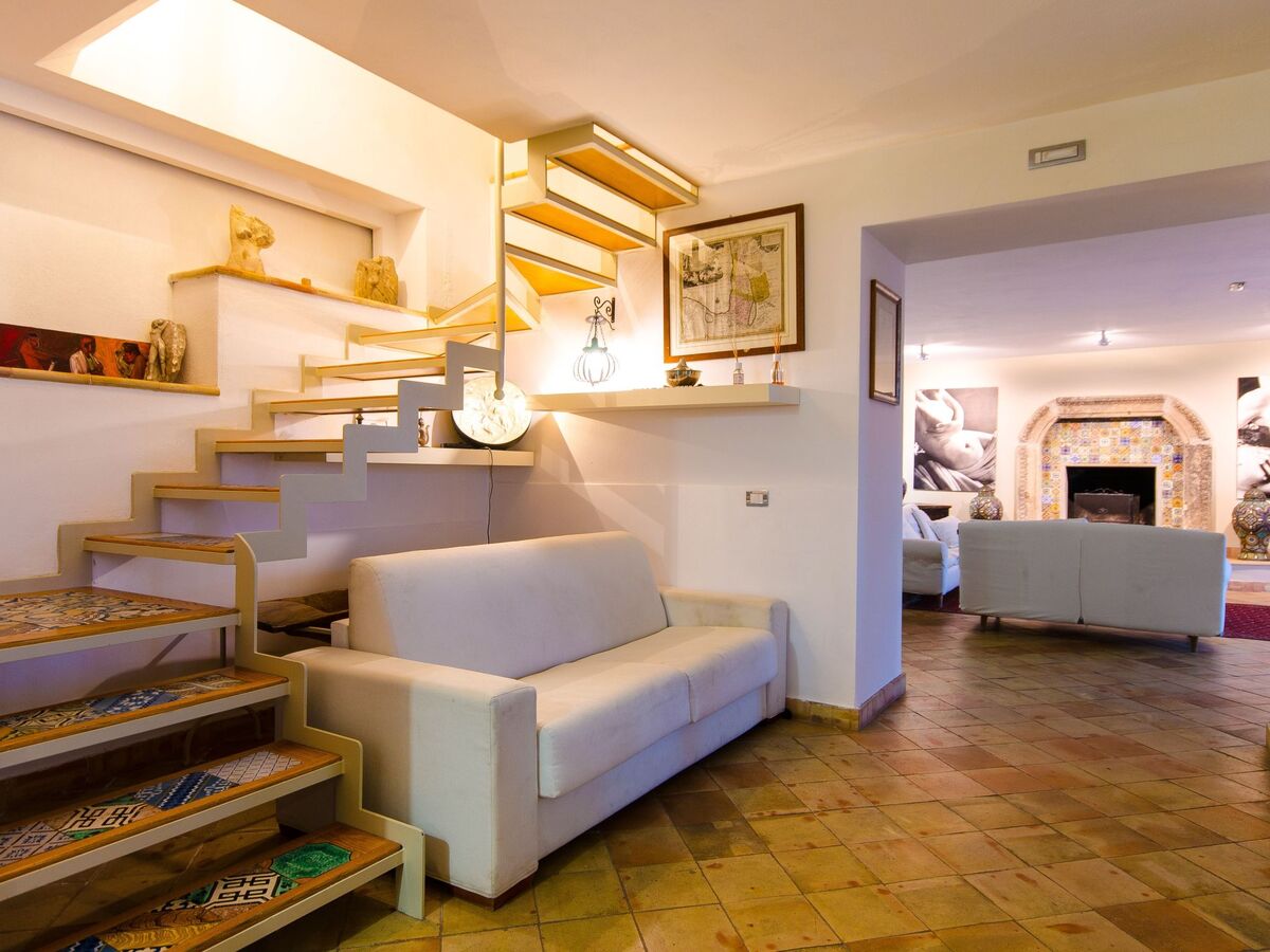 There is a barbecue and solarium area and a beautiful outdoor swimming pool, also sea view, shared with the other guests of the dependances below, accessible by a compartment structure.