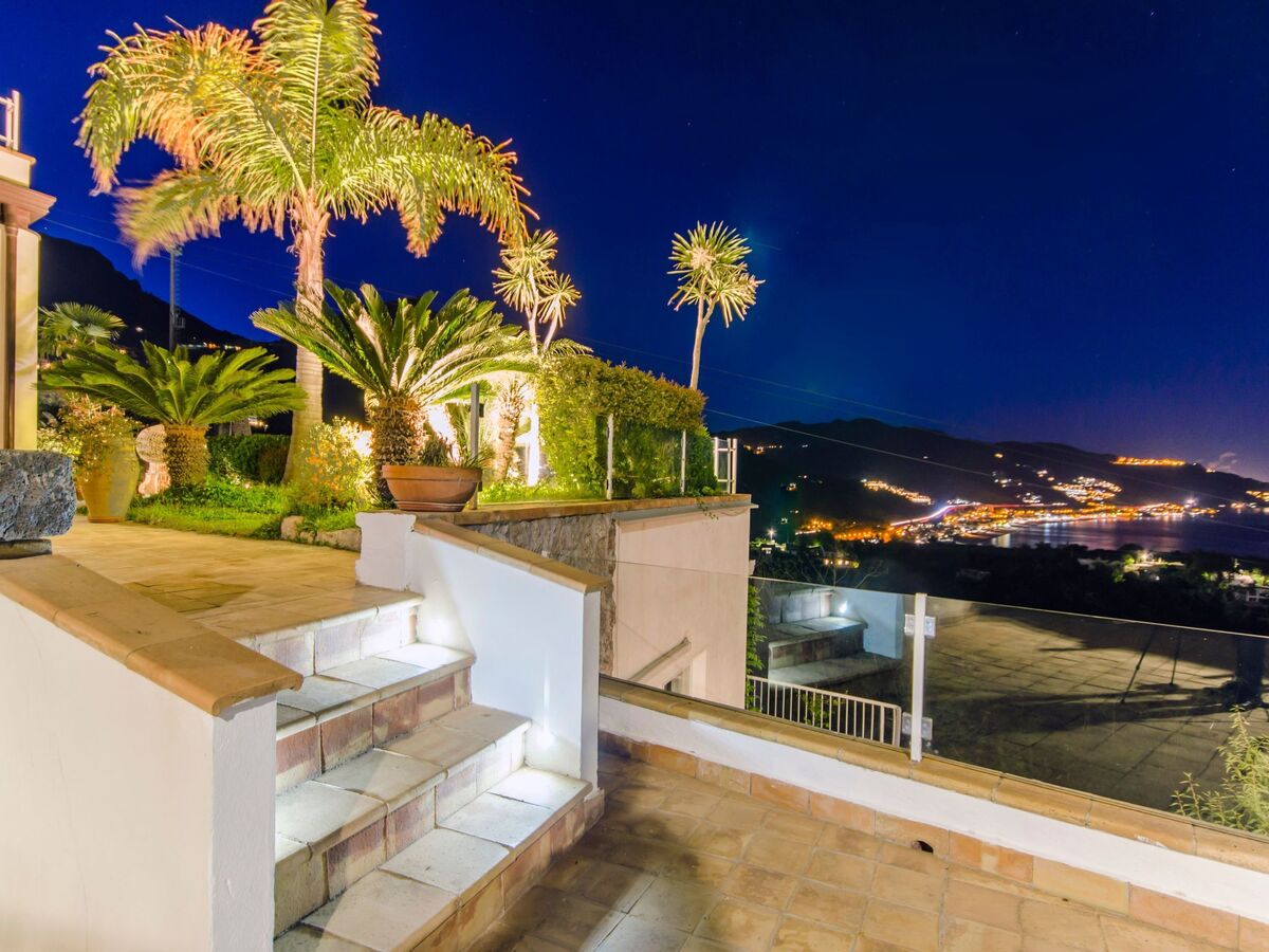 Away from the city traffic, the villa, with its own private entrance, covers an area of about 250 square metres, on two levels, with patio, garden and a stratospheric sea view.