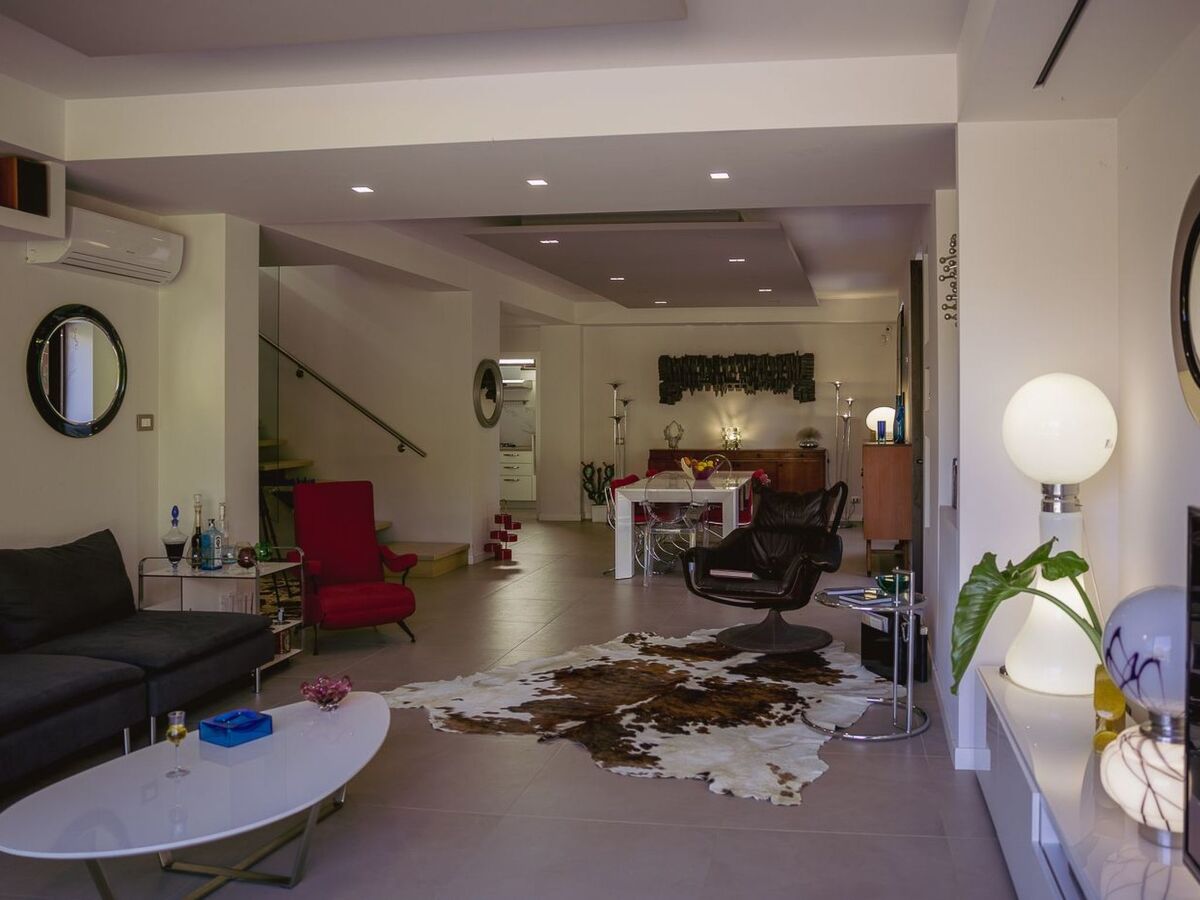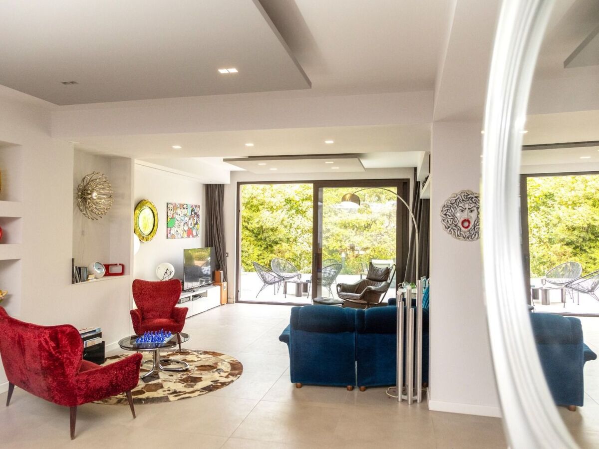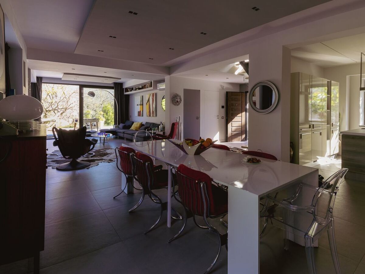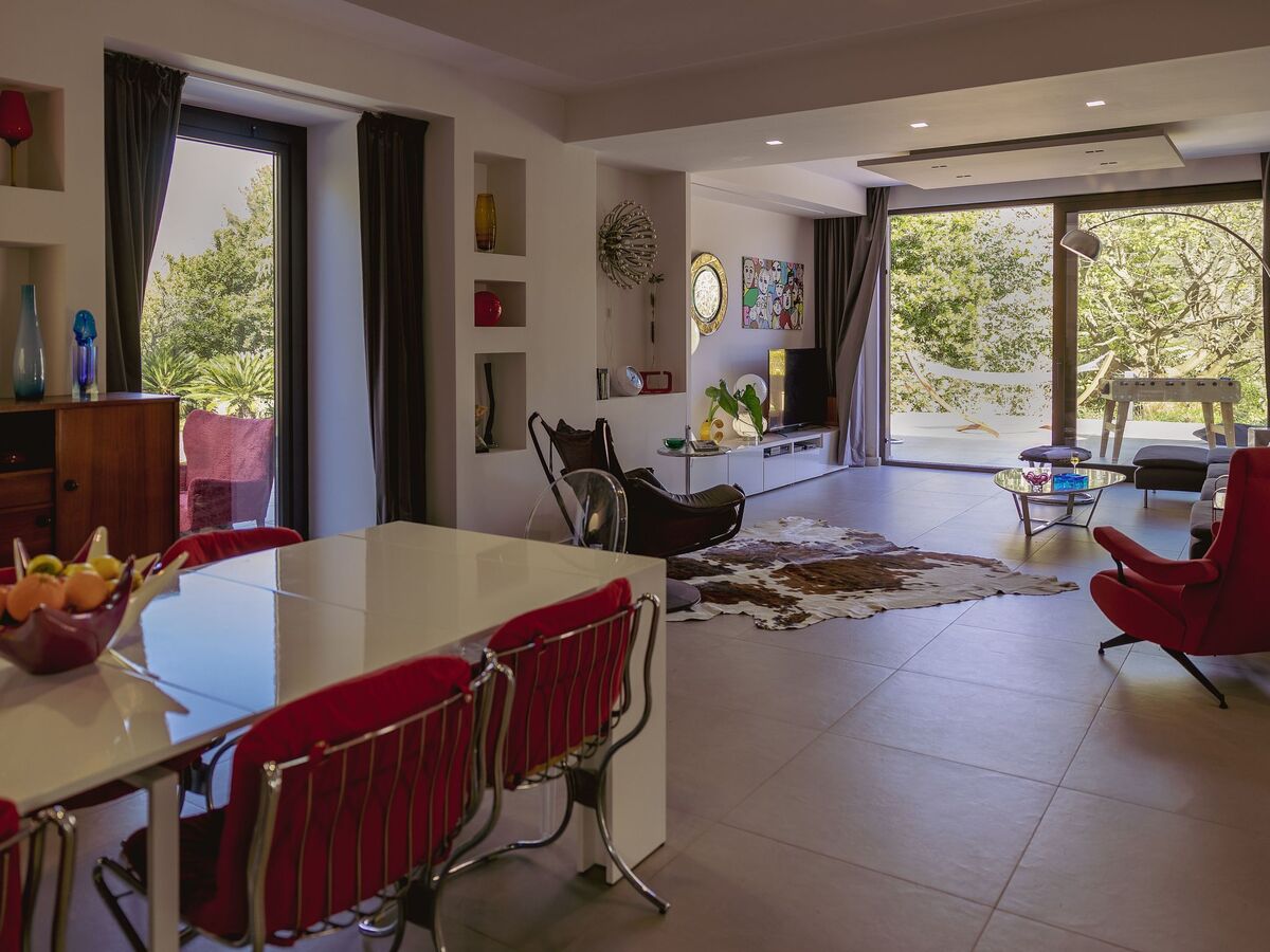 La villa est répartie sur deux étages, au rez-de-chaussée il y a une chambre avec salle de bains en suite et un grand espace ouvert avec un grand salon, une salle à manger et une cuisine entièrement équipée, entourant le premier étage est une grande terrasse avec barbecue et une grande table pour les repas en plein air, zone de détente avec des canapés, des hamacs et des tables de petit déjeuner.