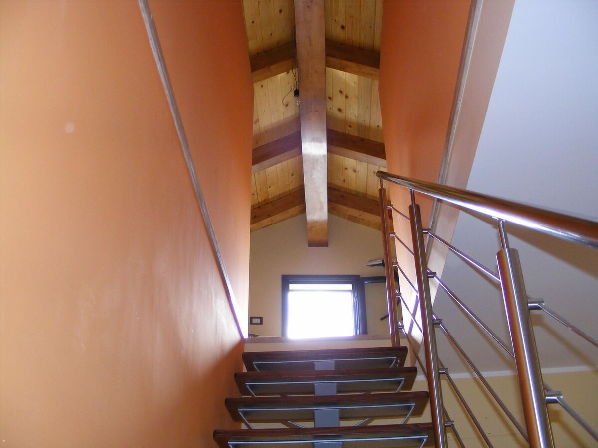 On the upper floor there are two more sleeping areas separated by a wall of shelves and a bathroom.