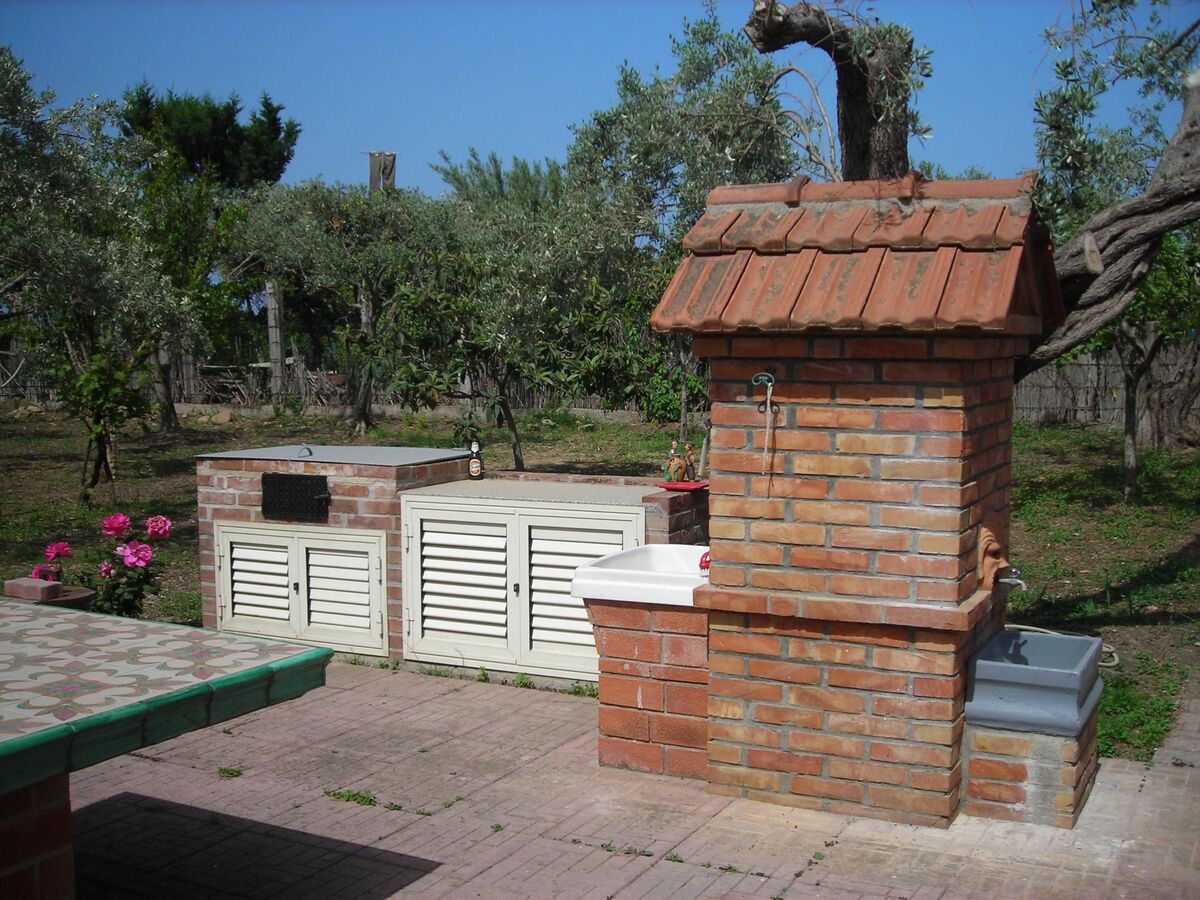 Next to the large table is a fountain with running water coming directly from the village well and a barbecue for preparing meals outdoors.