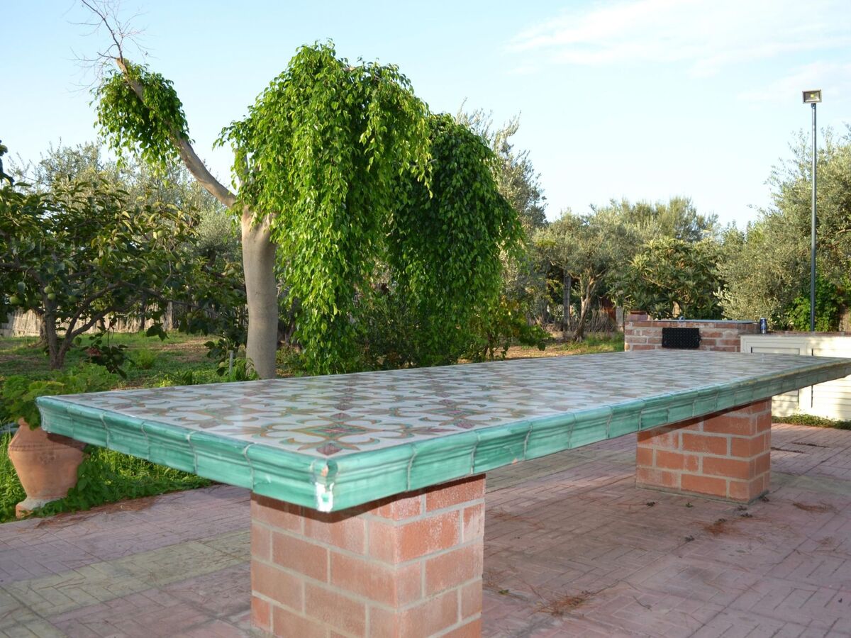 On one side is a large brick table with ceramic tiles, perfect for dinners with friends or family.