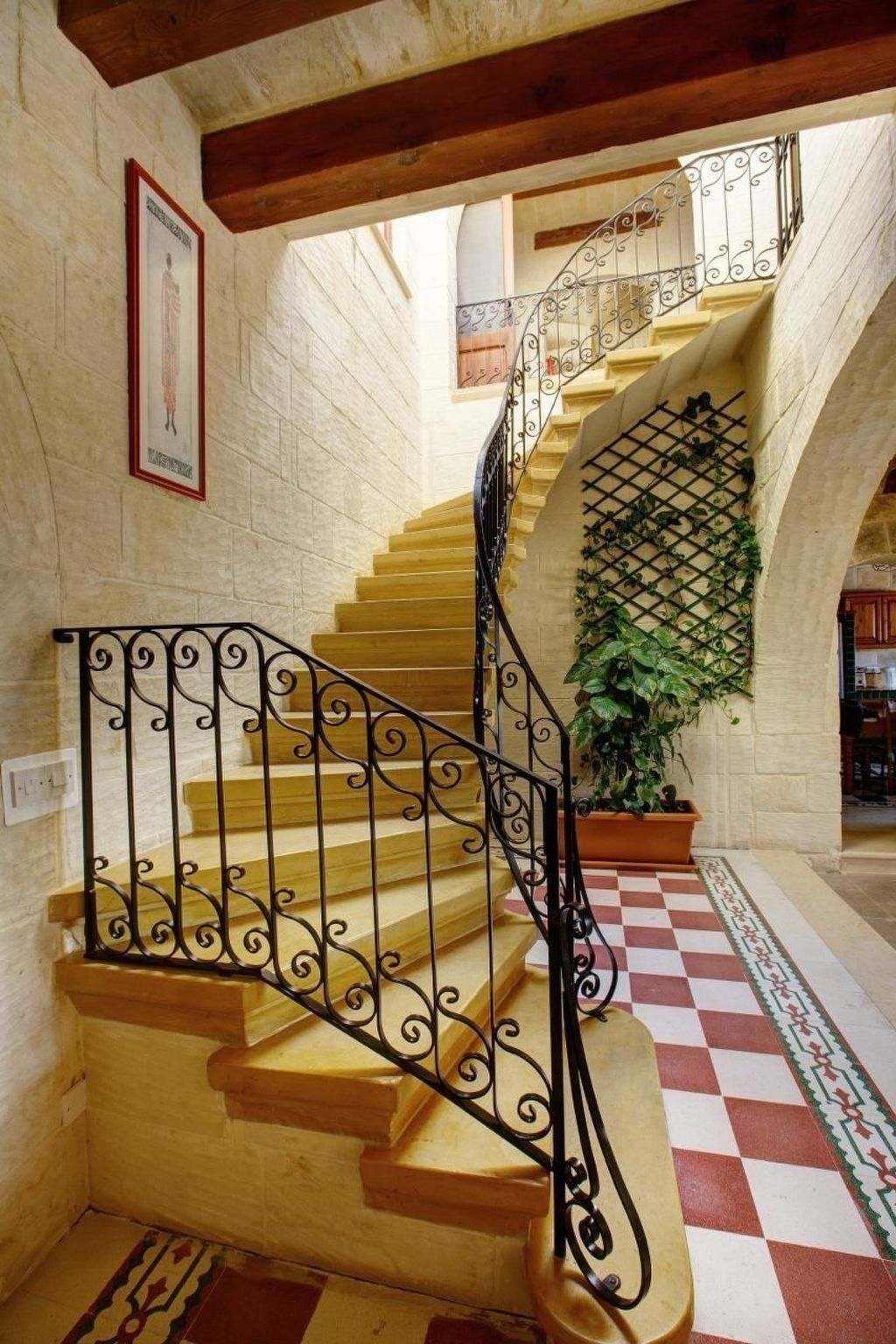 Inside, the villa's exceptional interior captivates with its authentic charm and boasts numerous traditional features including limestone vaulted arches, solid wood furniture, and exposed wooden beams.