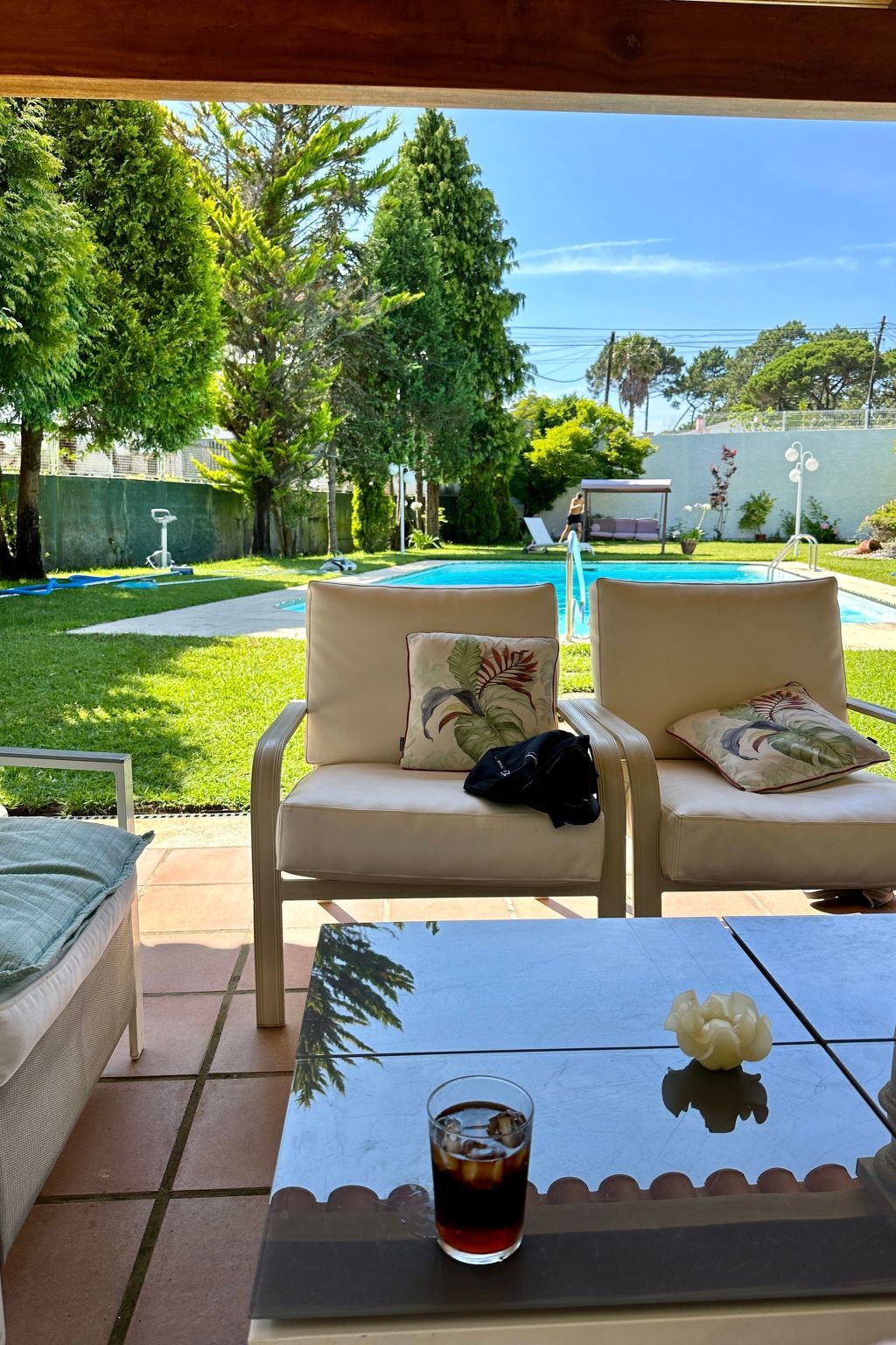 Inside, the house has three spacious living rooms, two with fireplaces, comfortable sofas and one with a small dining table, creating perfect corners for conviviality or individual retreat.
