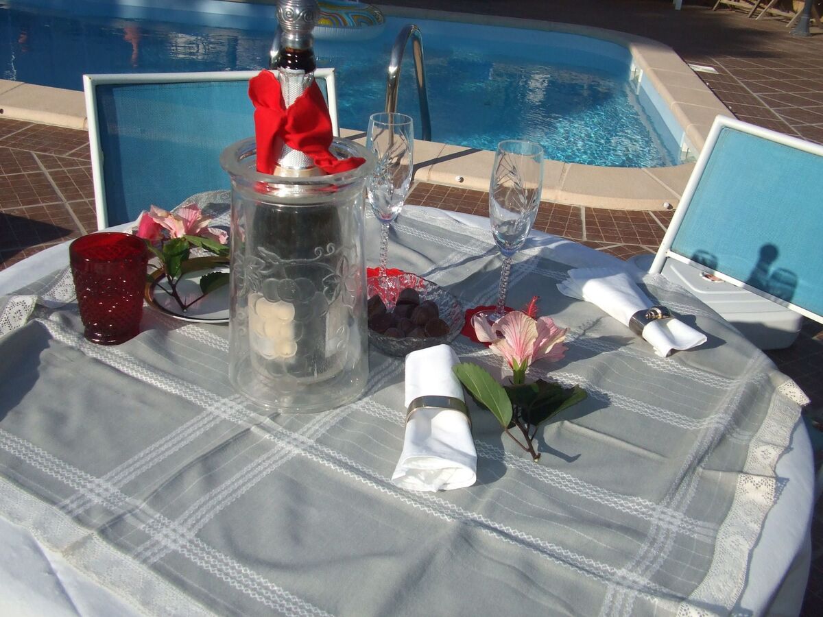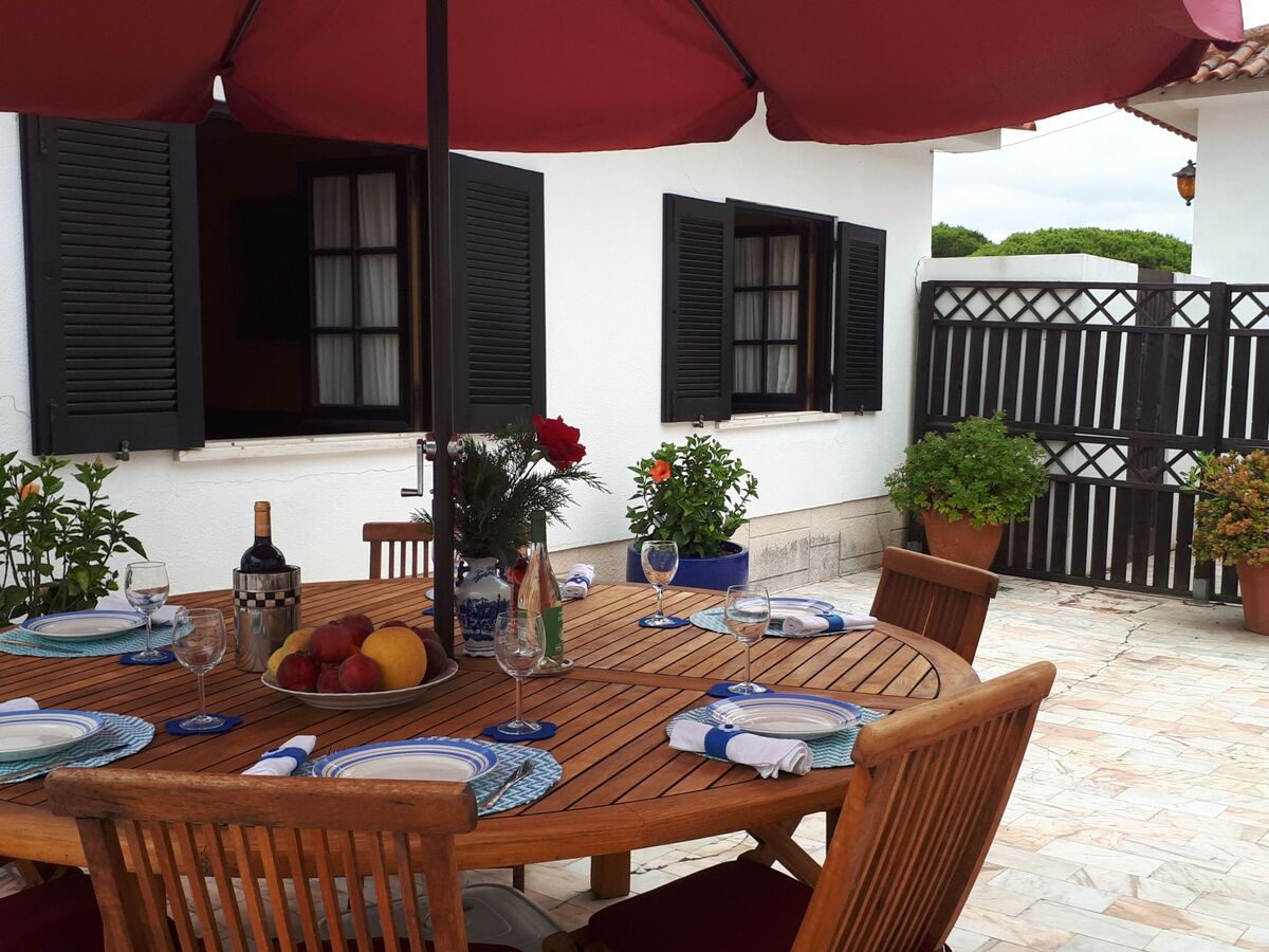 Right in front of the bungalow is a large sunny terrace with a table and chairs and a traditional stone grill.