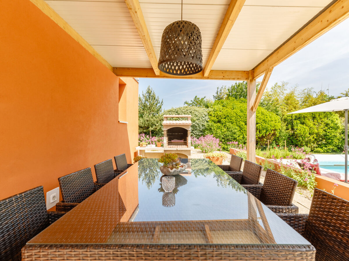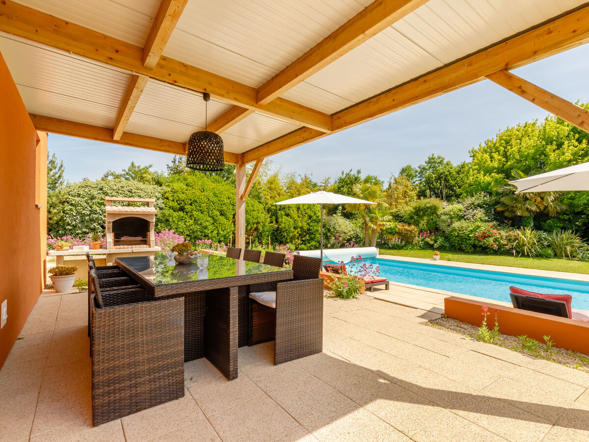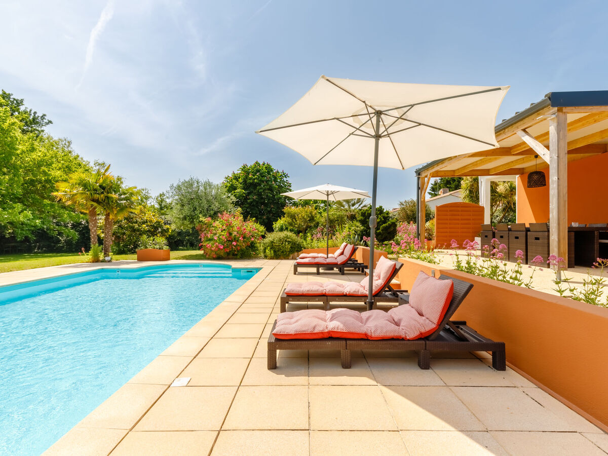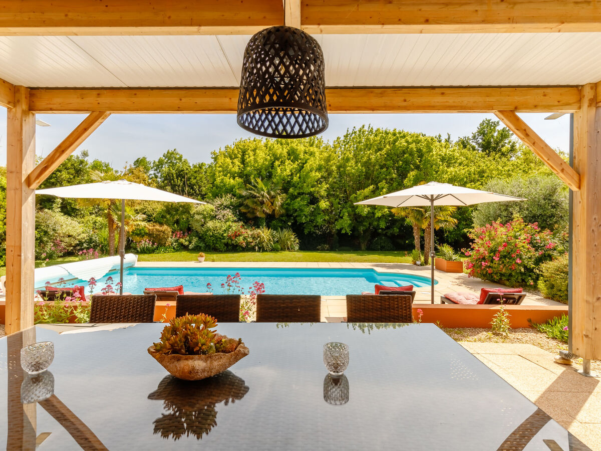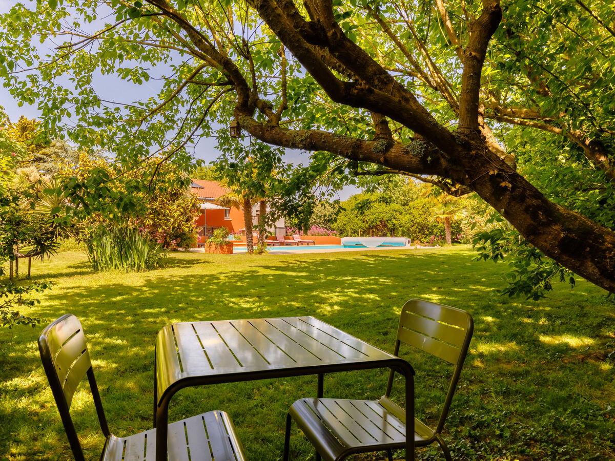 Un beau et grand jardin entretenu de 2000 m2 (clôturé) avec pelouse et fleurs, une piscine (10 x 5 m) avec alarme de sécurité sont aussi disponibles sur place. De plus, une terrasse de 40 m2 et des meubles de terrasse, un barbecue, et six chaises longues se trouvent aussi dans la propriété.