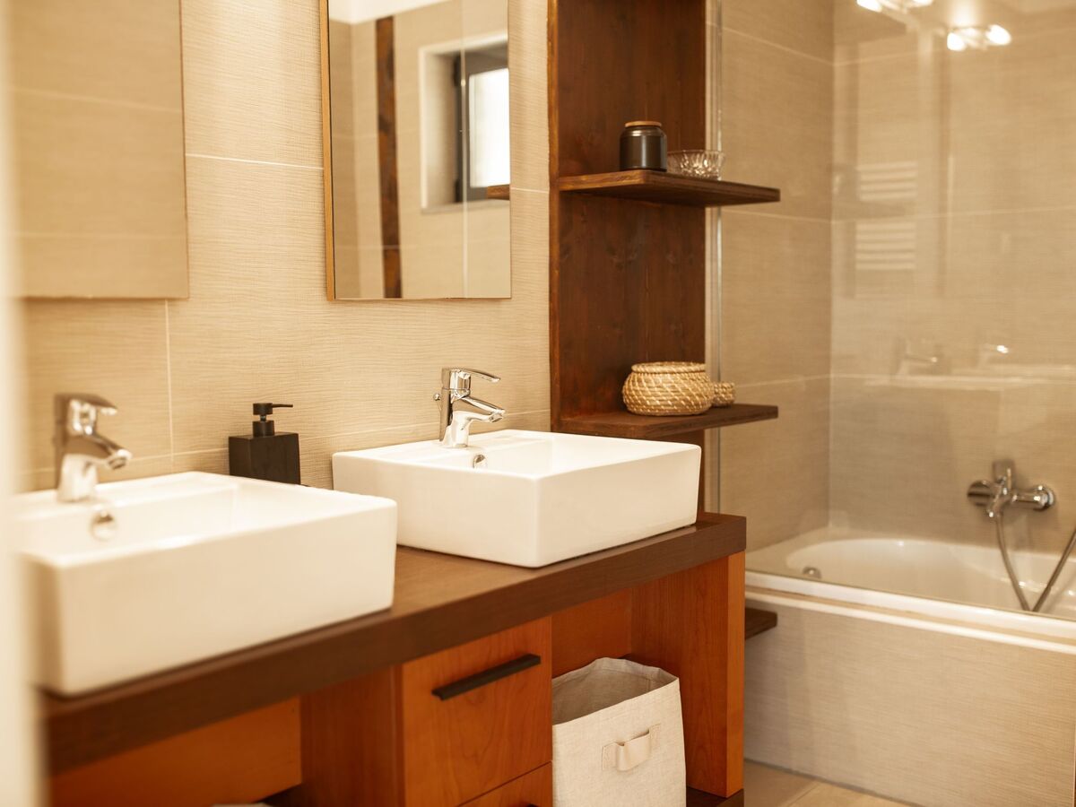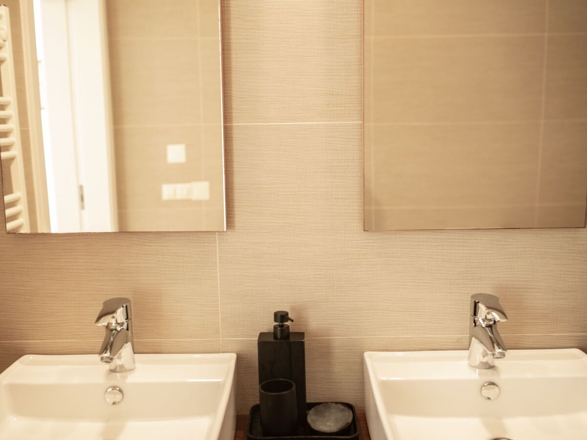 The two large bedrooms with ensuite bathrooms ensure privacy and comfort, while the open-plan living area with a dining room and a well-equipped kitchen is perfect for socializing and enjoying meals together.