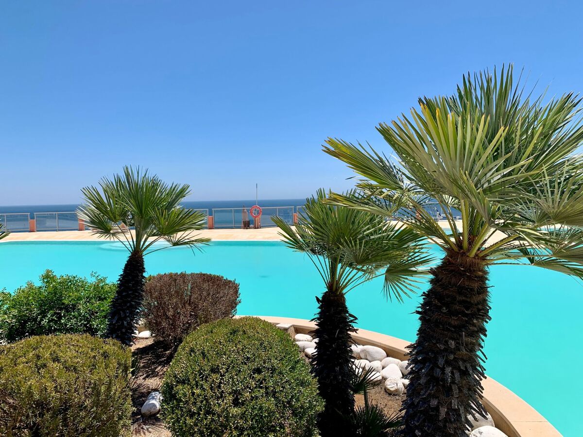 entourée ds jardins luxuriants avec immense piscine d'eau salée vue sur l'océan