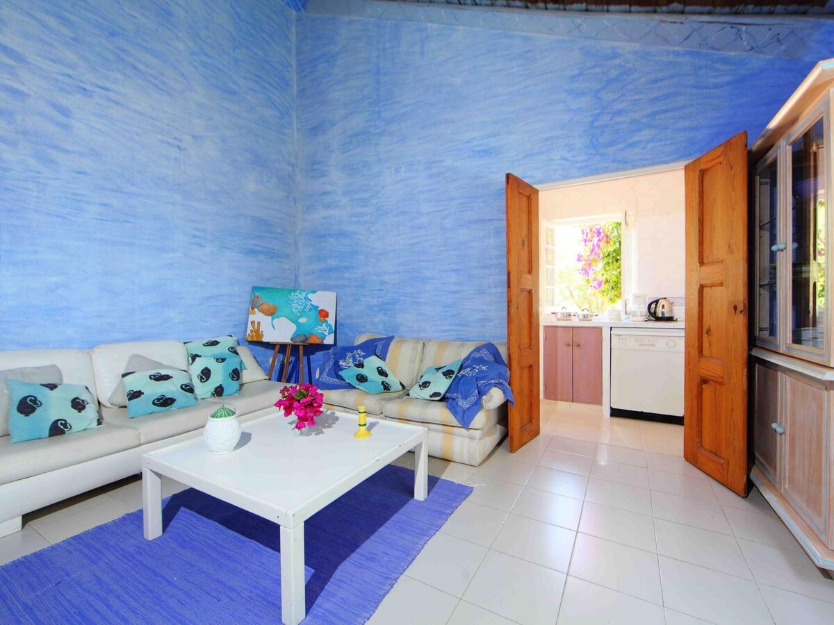 Inside, the house reflects Portuguese charm with its blue walls and wooden beams, capturing the essence of the region.