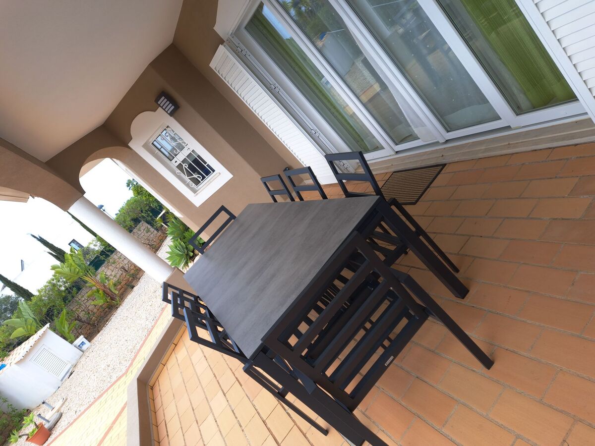 The covered terrace provides a spacious shaded haven from the sun’s warmth, offering a perfect setting to enjoy the outdoor pool.