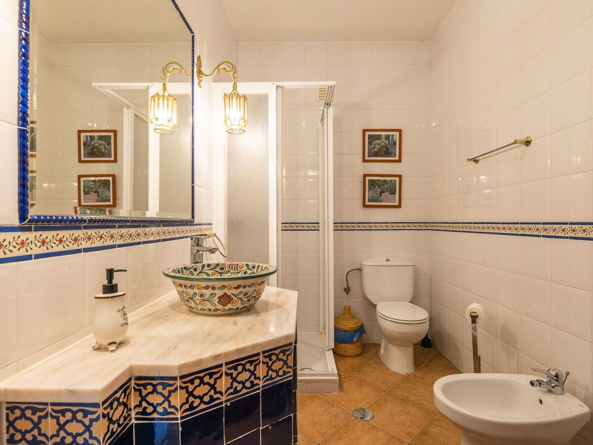 Il y a 5 chambres, toutes avec climatisation, 3 salles de bain complètes à l'intérieur (1 en suite dans le grenier), 1 salle de bain avec lavabo et WC à l'intérieur et 1 à l'extérieur à côté de la piscine.