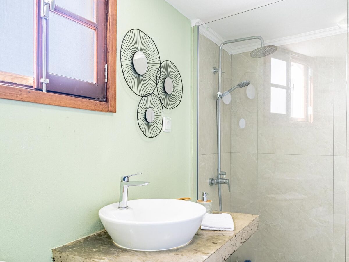 Cette charmante propriété dispose d'une salle de bains équipée d'un sèche-cheveux.