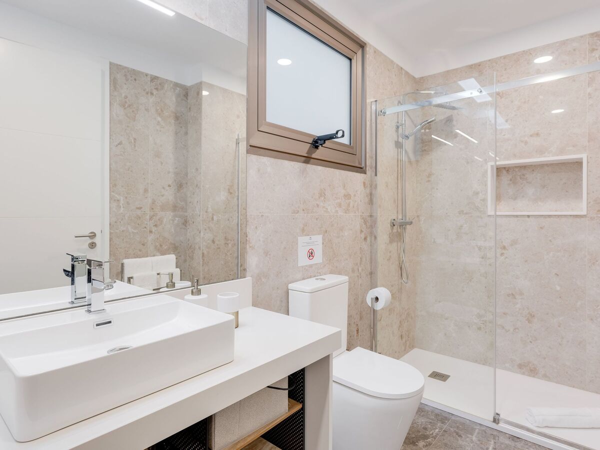 The living spaces are designed for relaxation and entertainment, featuring air conditioning throughout to keep the ambiance cool and inviting.