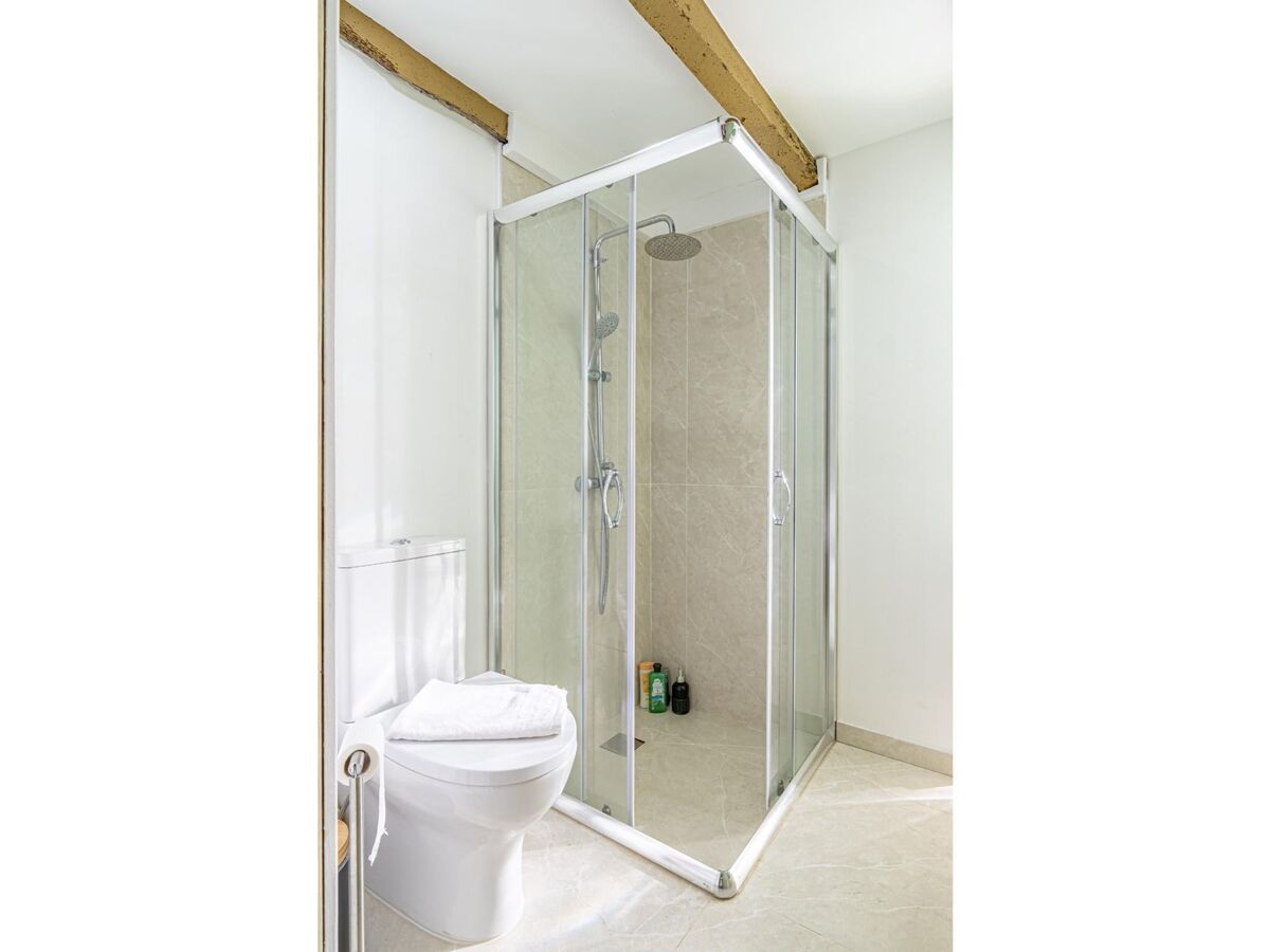 Cette retraite paisible offre 2 chambres plus une avec 3 lits complets, un bureau confortable avec un lit complet supplémentaire, et une salle de bains moderne avec une douche.
