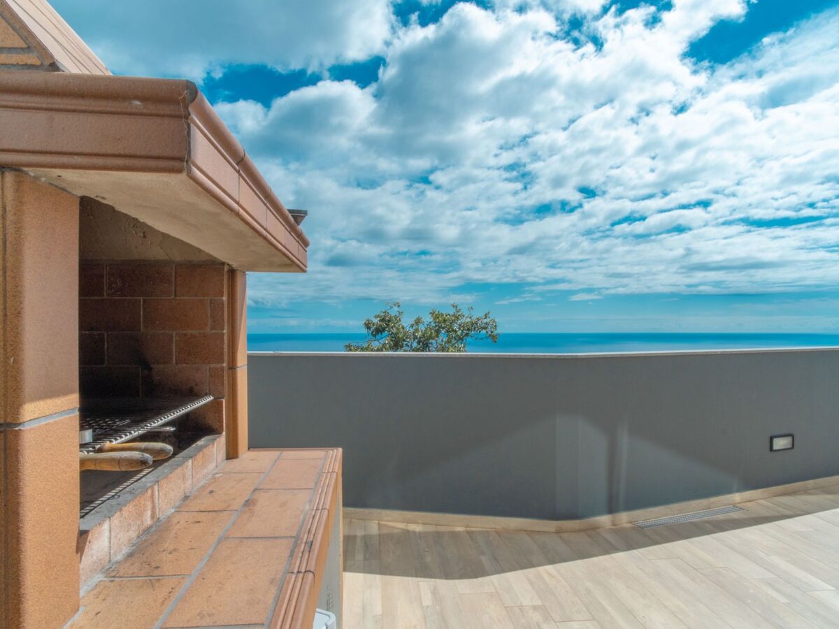 The patio area, equipped with a barbecue grill, offers a fantastic setting for outdoor dining and socializing, all while enjoying the stunning sea view that stretches before you.