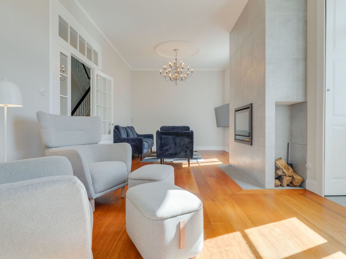 The living room, illuminated by natural light that enters through the large windows, is the ideal space to relax.