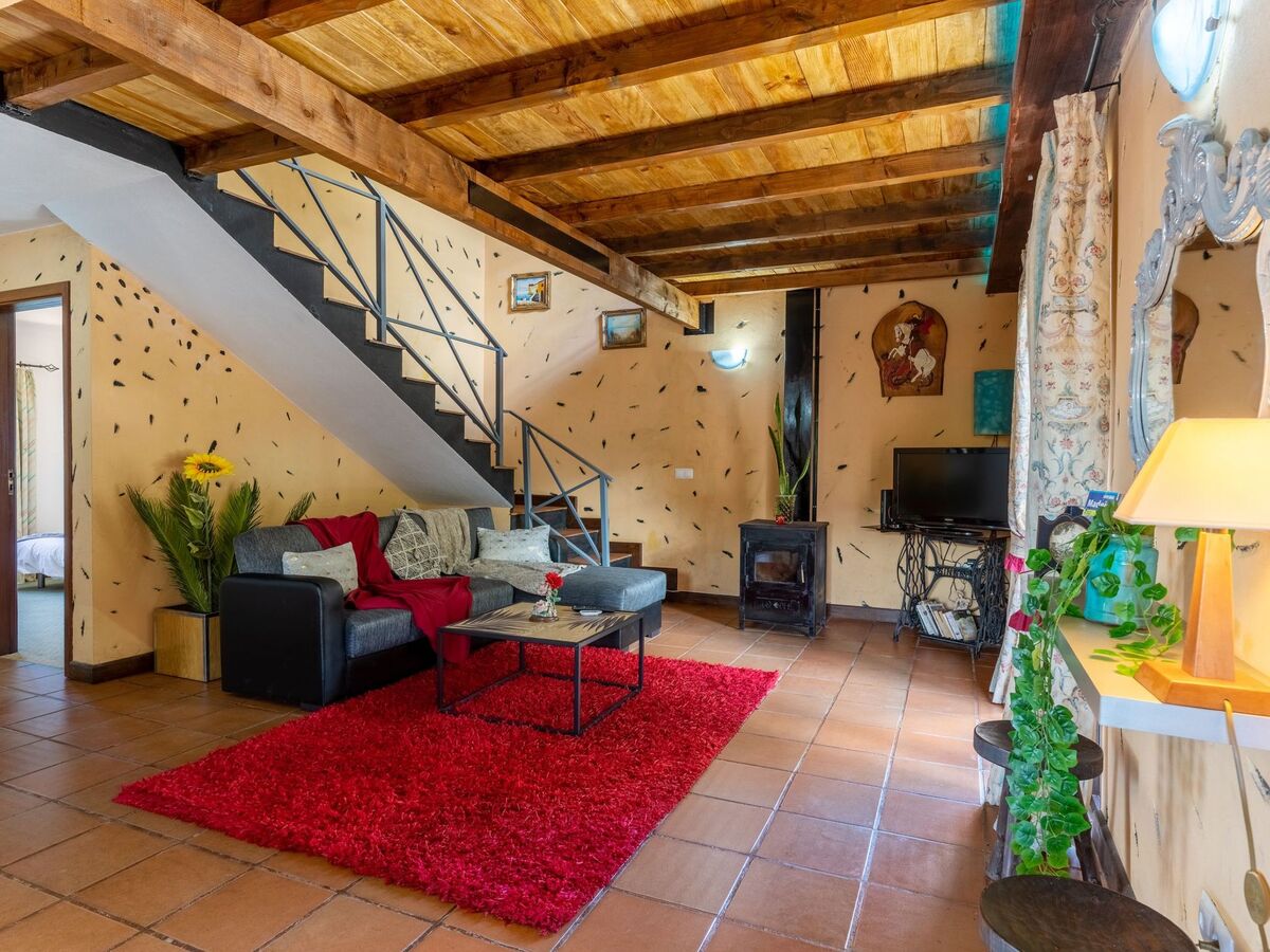 The cottage's rustic charm extends to its exterior, where the picturesque thatched roof complements the natural landscape.