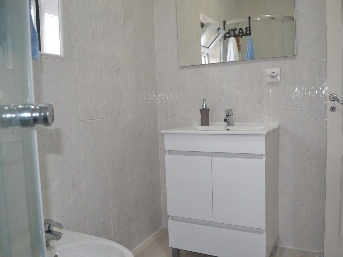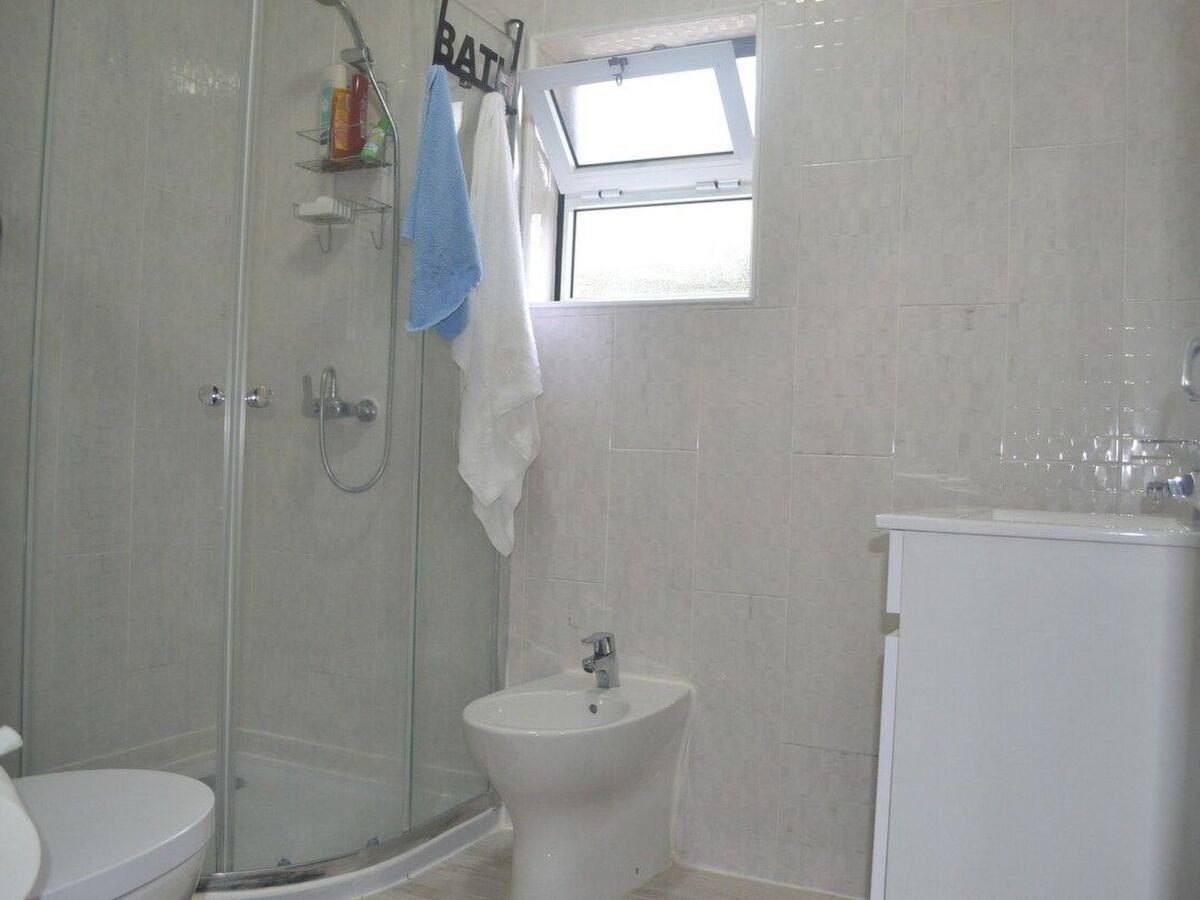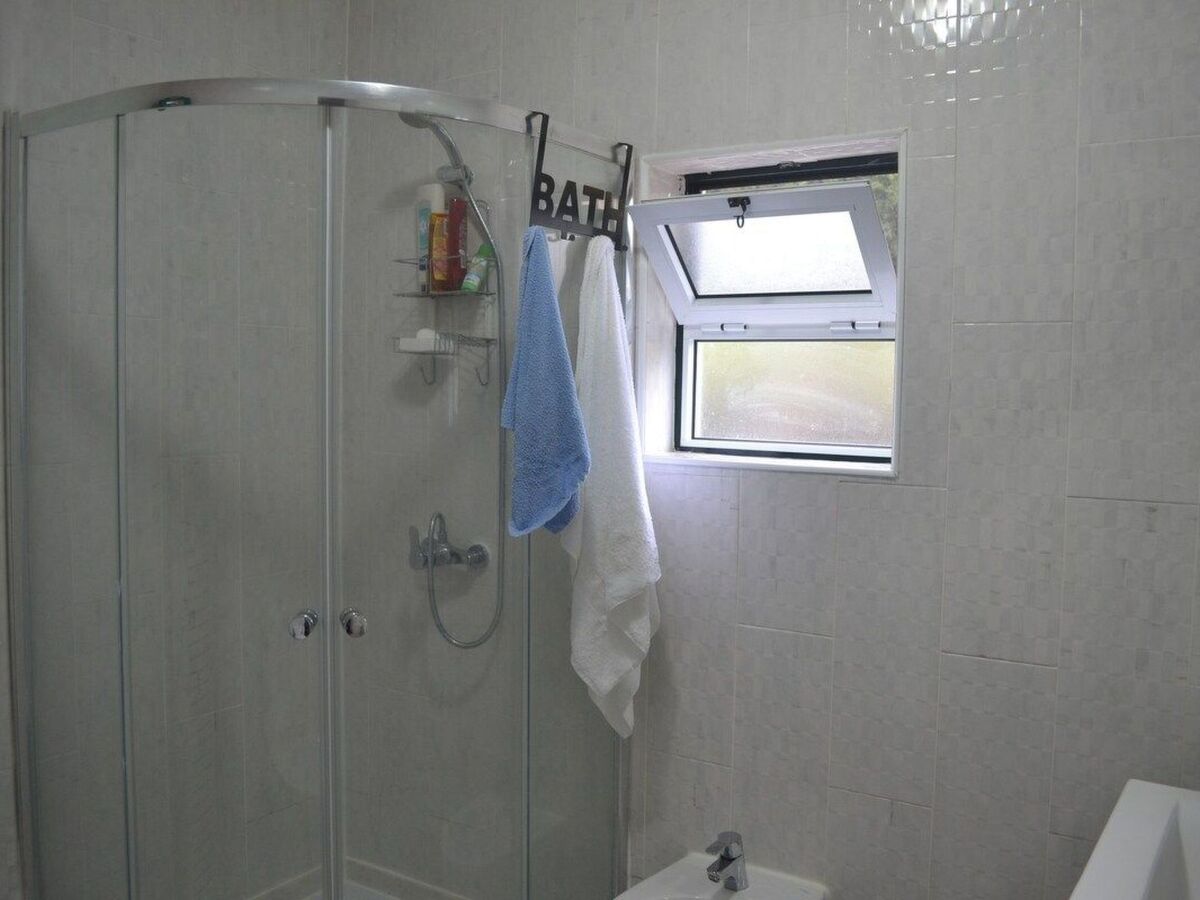 La salle de bain avec douche et tous les ustensiles qui la concernent.