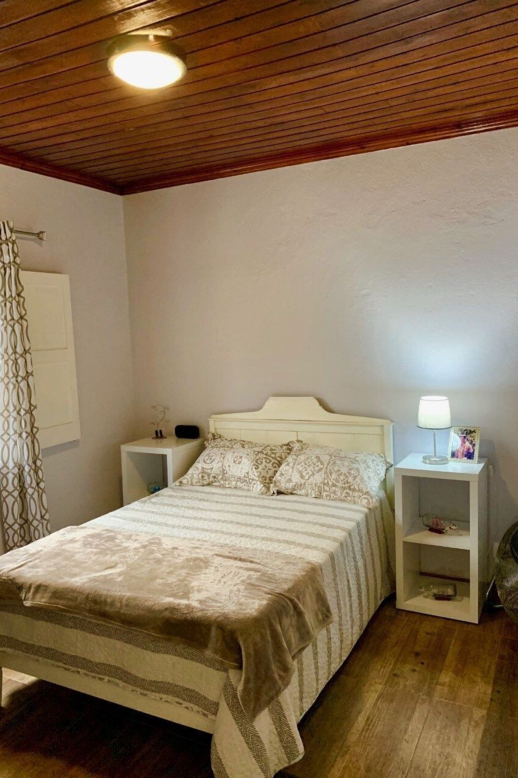 Trois chambres à coucher : deux chambres à coucher et une d'une personne avec une table de chevet et des meubles adaptés à une maison rustique typique.