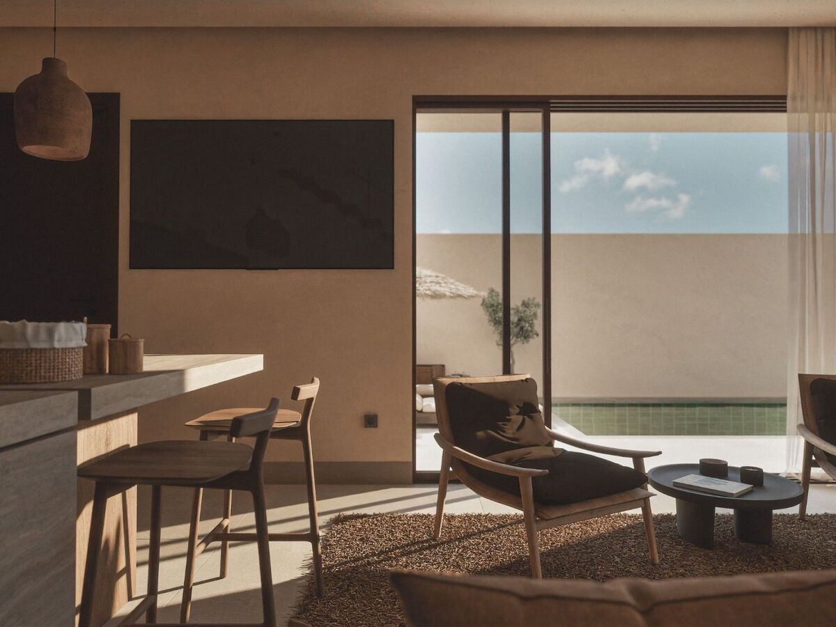 Each villa includes a spacious living room with a smart TV, perfect for relaxing.