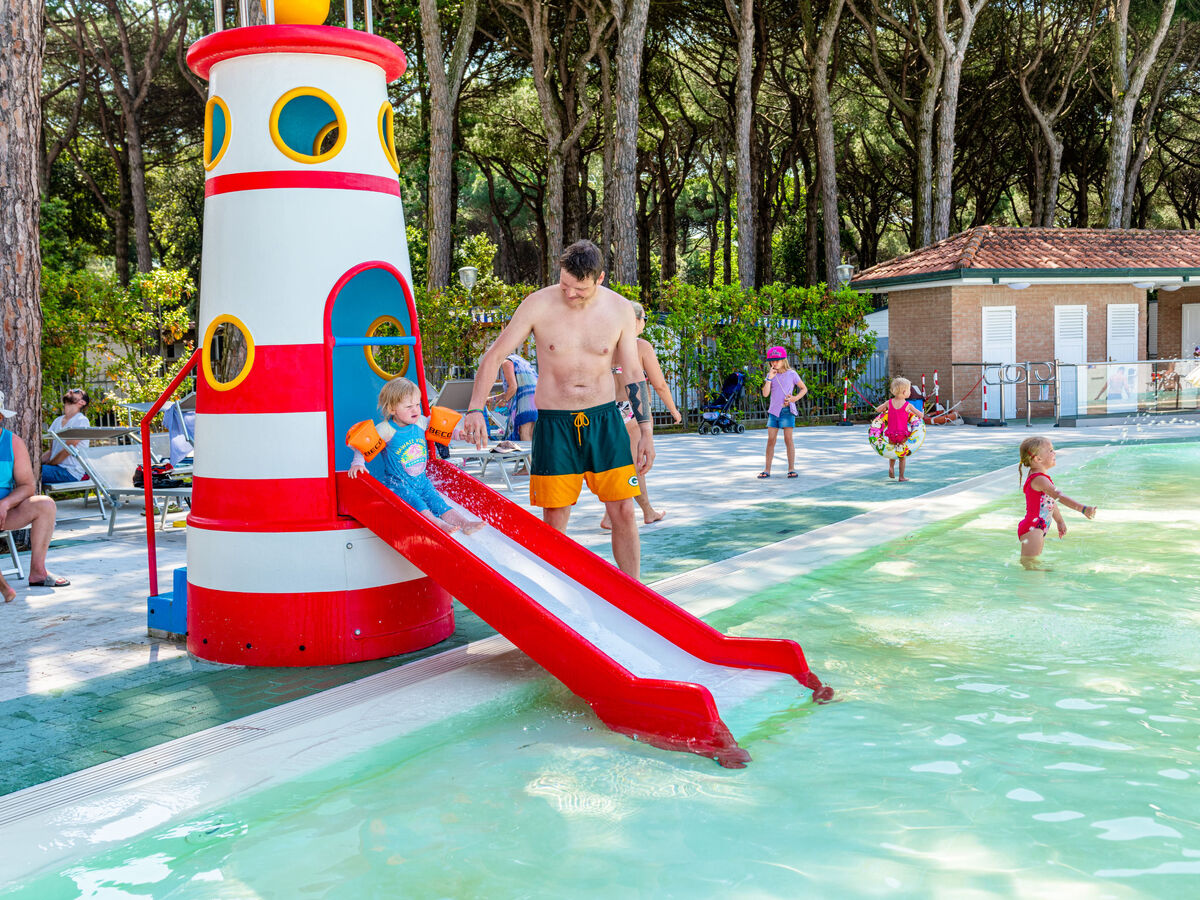 Lidi Ferraresi: Grand complexe de vacances accueillant pour les enfants "Mare e Pineta", environné par les arbres.