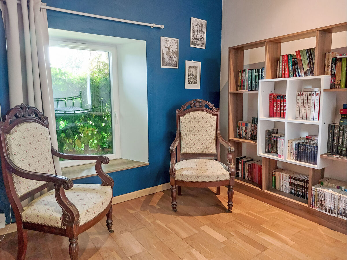 À l’extérieur de la demeure, un jardin privé de 1500 m2, clôturé, avec pelouse et des plantes, est disponible.