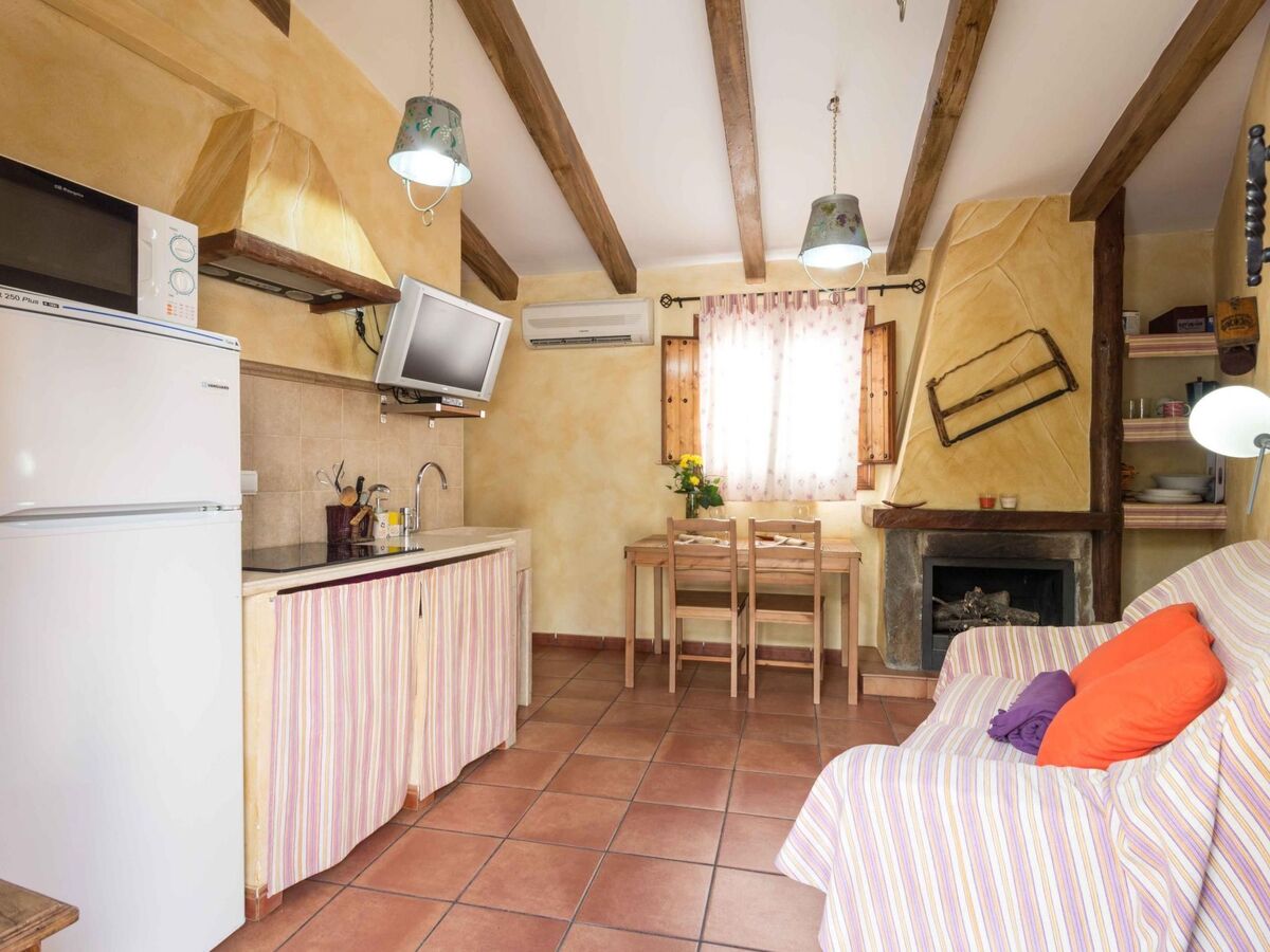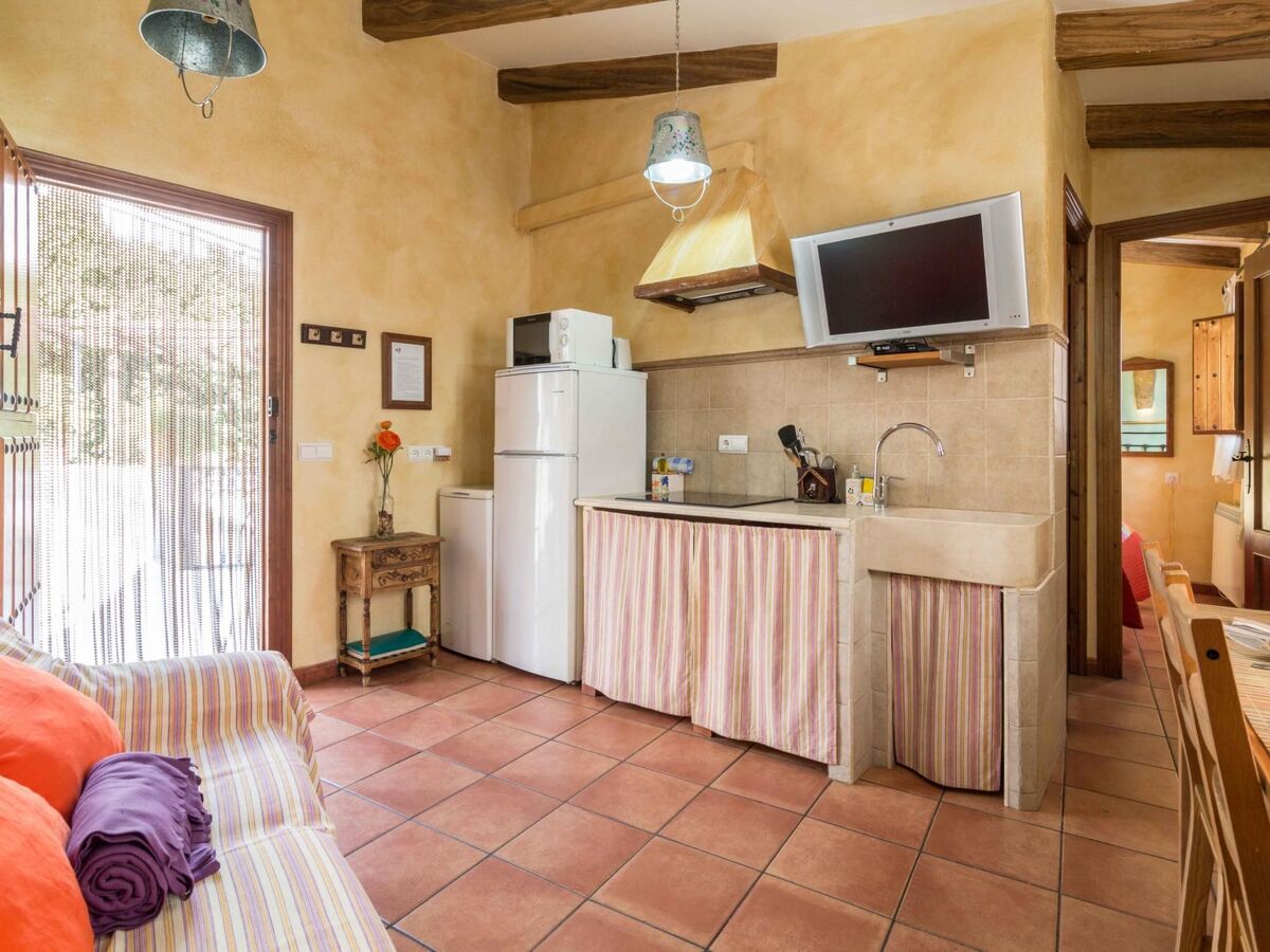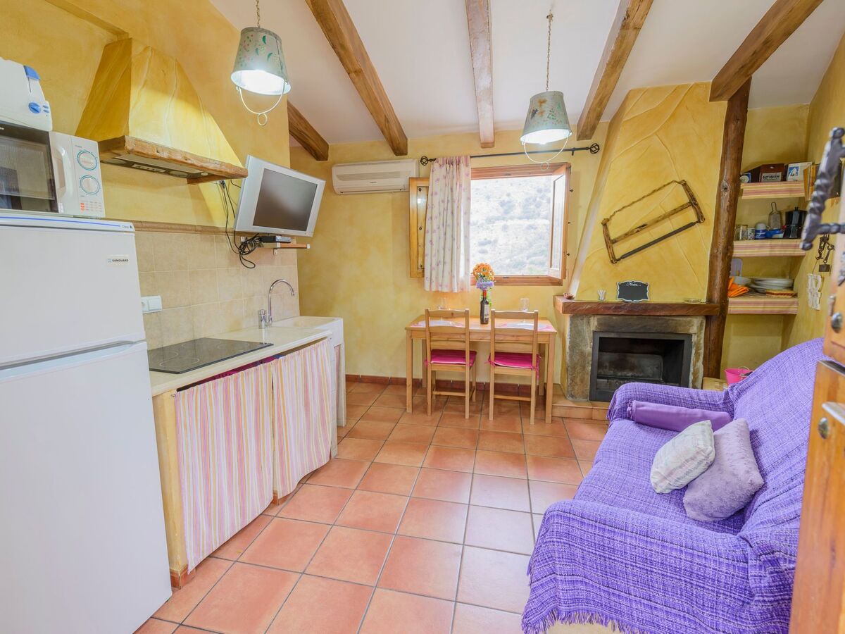 The kitchen is fully equipped and includes a ceramic hob, microwave, toaster, fridge, coffee maker and kettle.