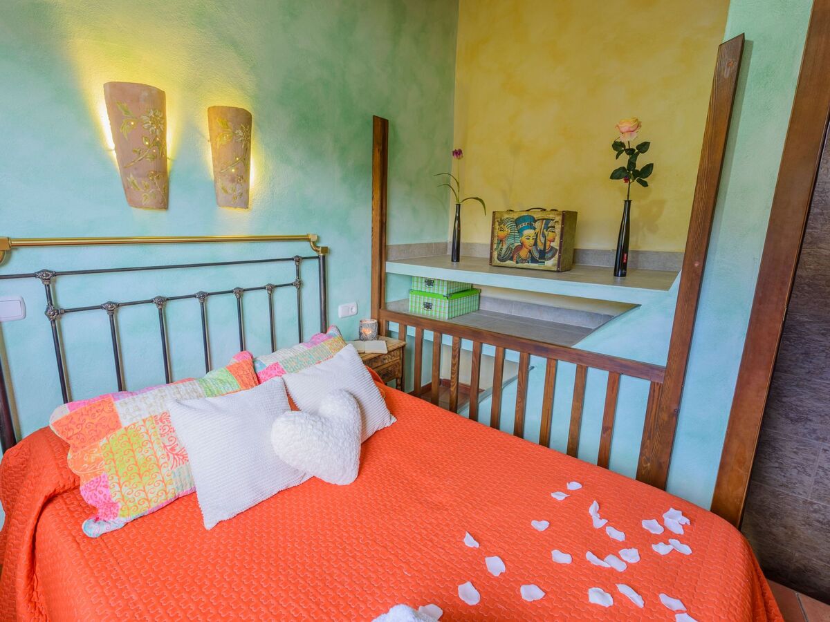 The house has a bedroom with a jacuzzi and a 50-inch TV.