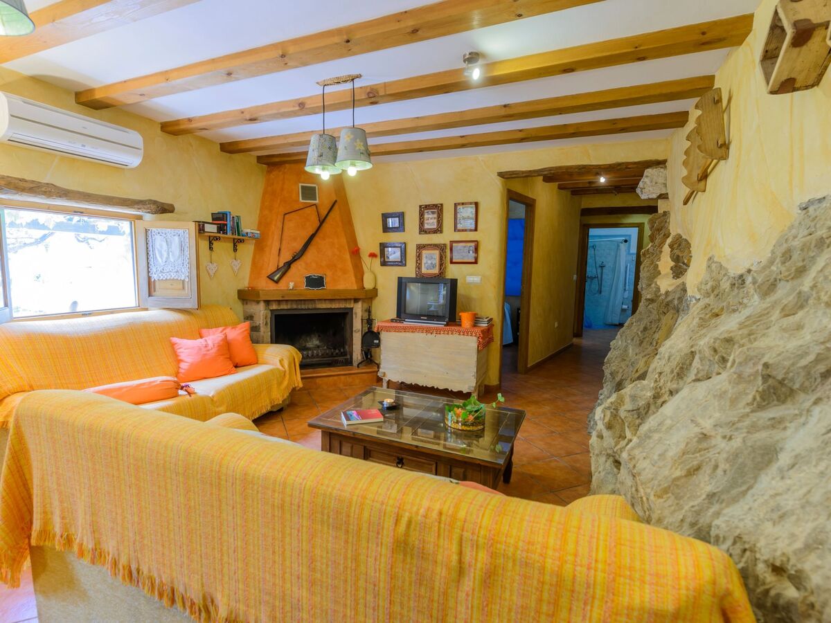 The living room has a TV, fireplace, DVD player and many games and travel guides.