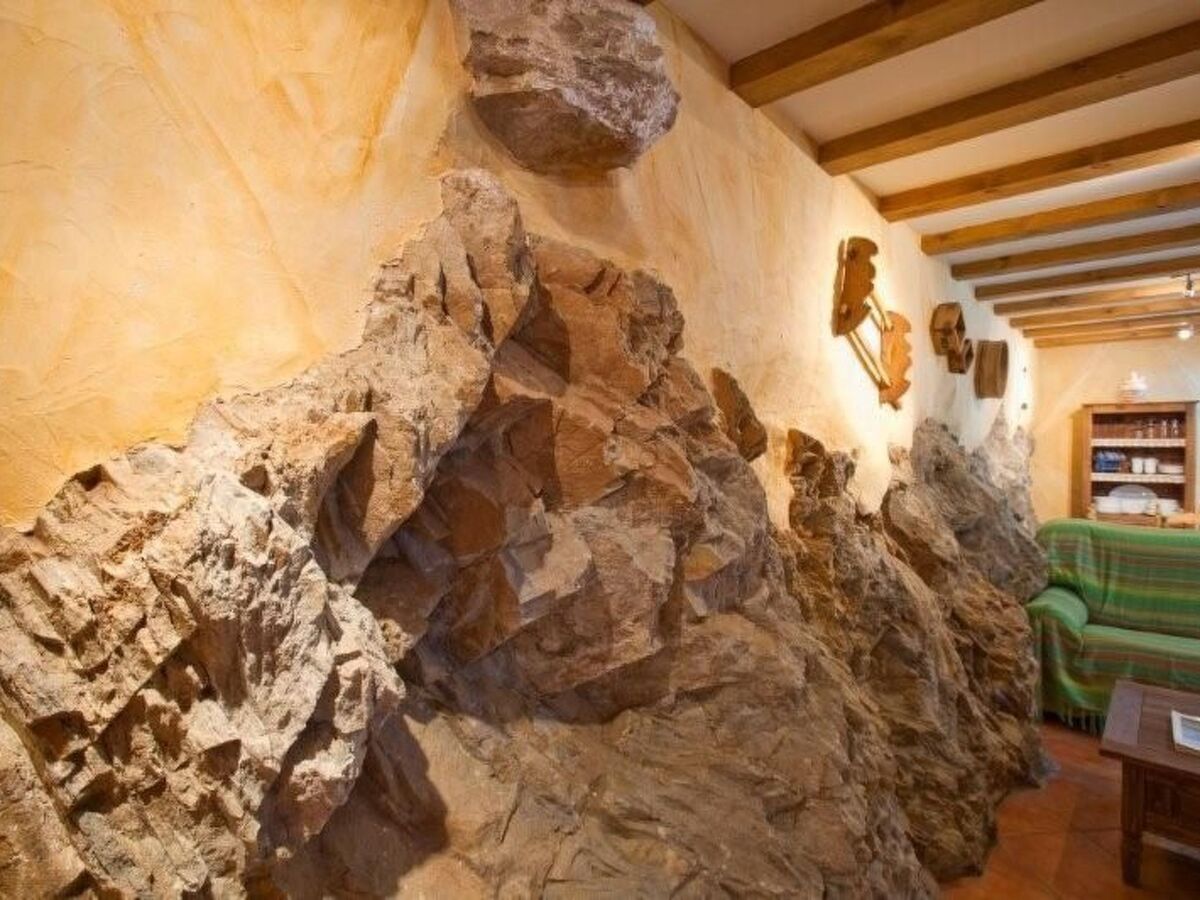 What distinguishes this house from all the others is the rock wall that runs through the living room, the hallway and even the bathroom.