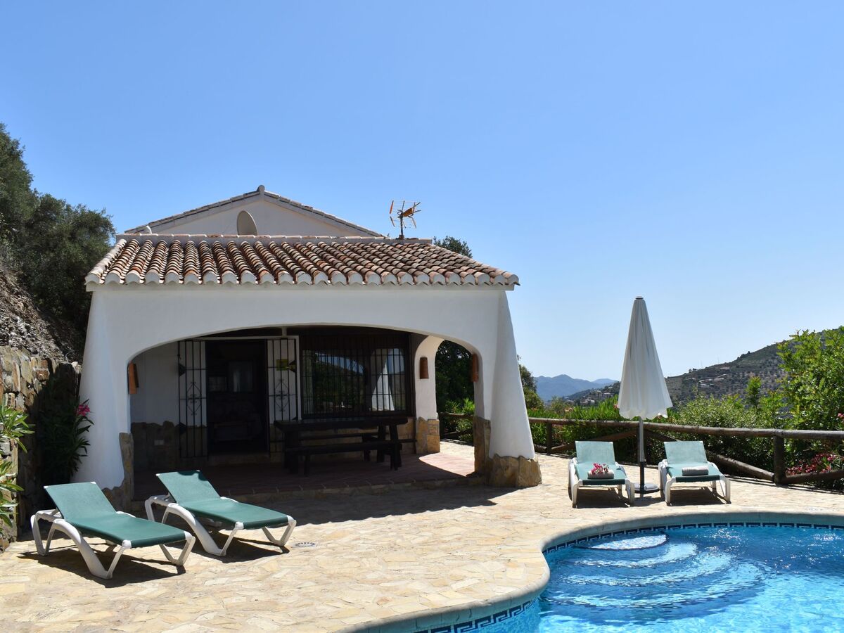 Outside the private pool with sun terrace and barbecue to enjoy the fantastic views of the mountains of the Axarquia and the Mediterranean Sea.