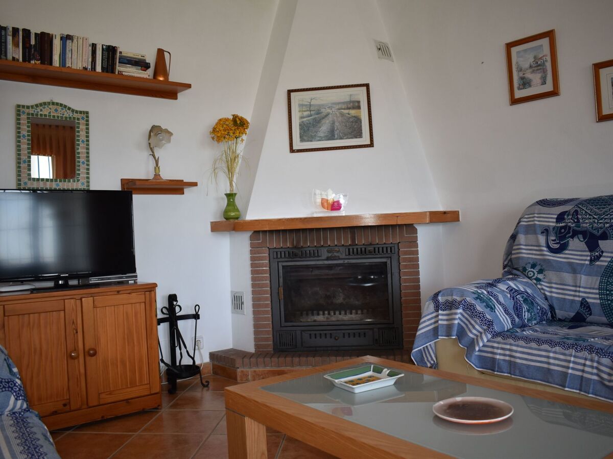The spacious and bright living room is furnished with 2 sofas, satellite TV, fireplace and dining area.