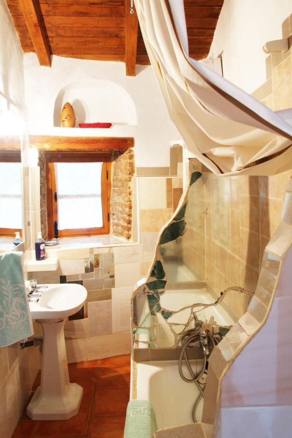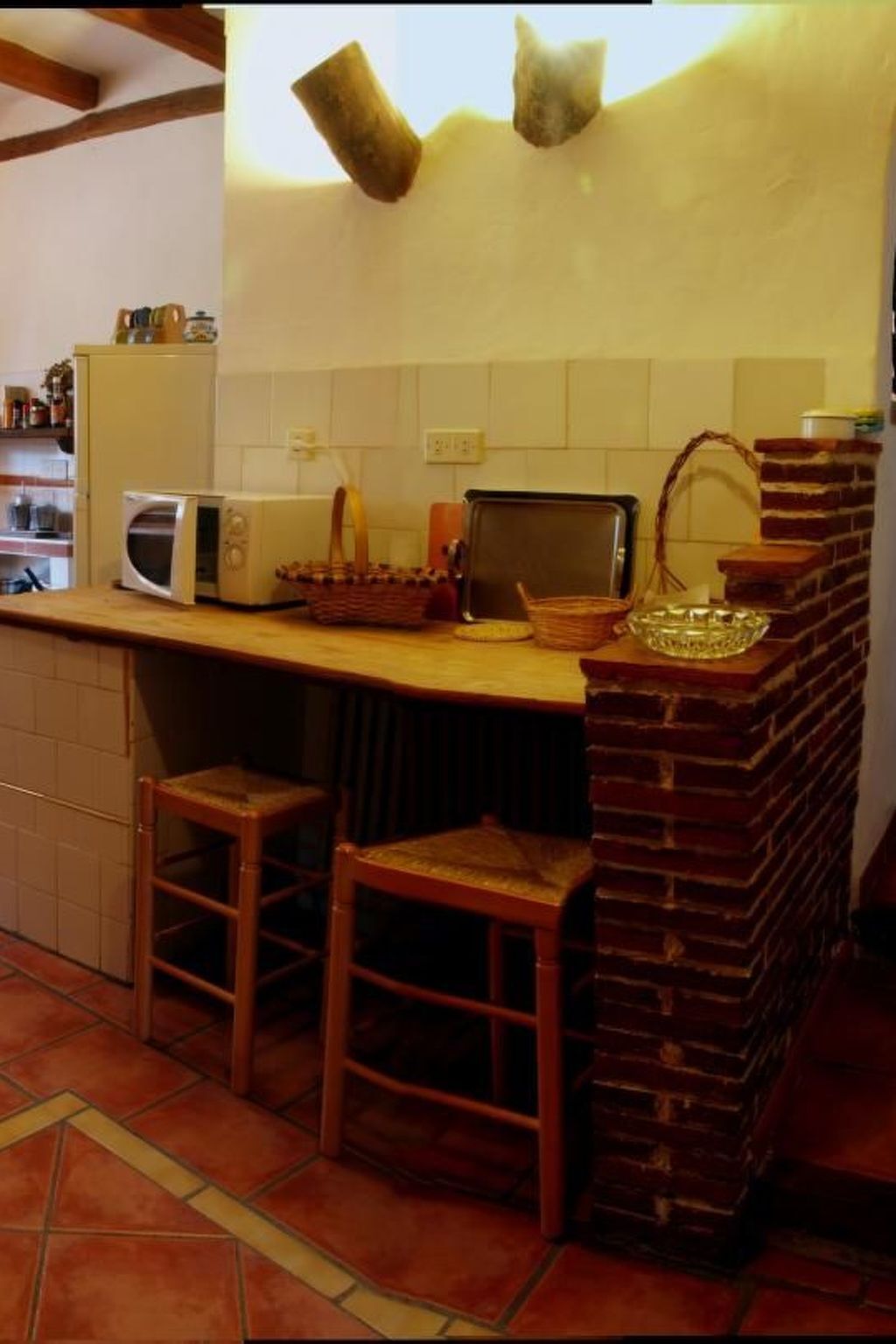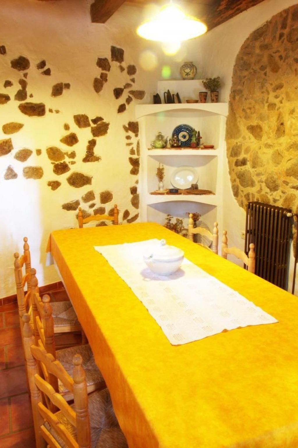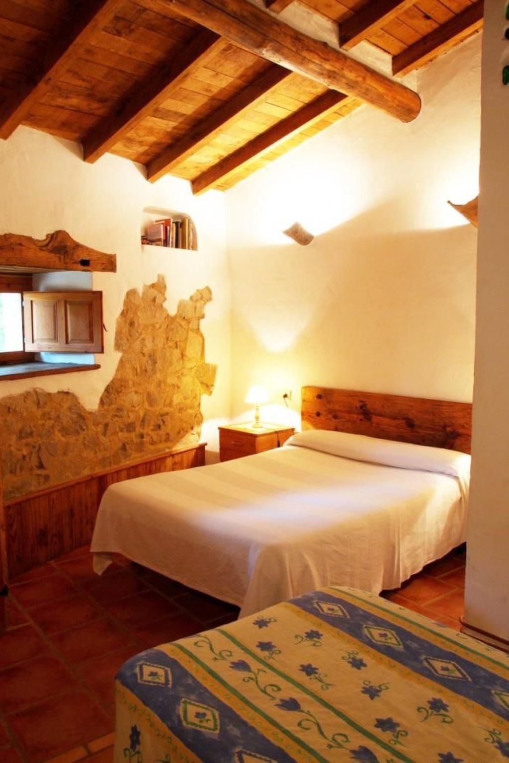 The ground floor has a bathroom with stone shower and the kitchen is equipped with gas cooker, fireplace, refrigerator, microwave, dishwasher, cutlery and dishes, and all other necessary kitchen utensils.