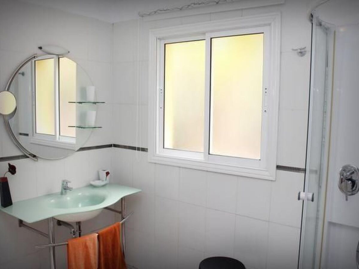 The adjacent bathroom boasts a hairdryer, a mirror, a shower with massage jets, a toilet, a bidet and electric heating.