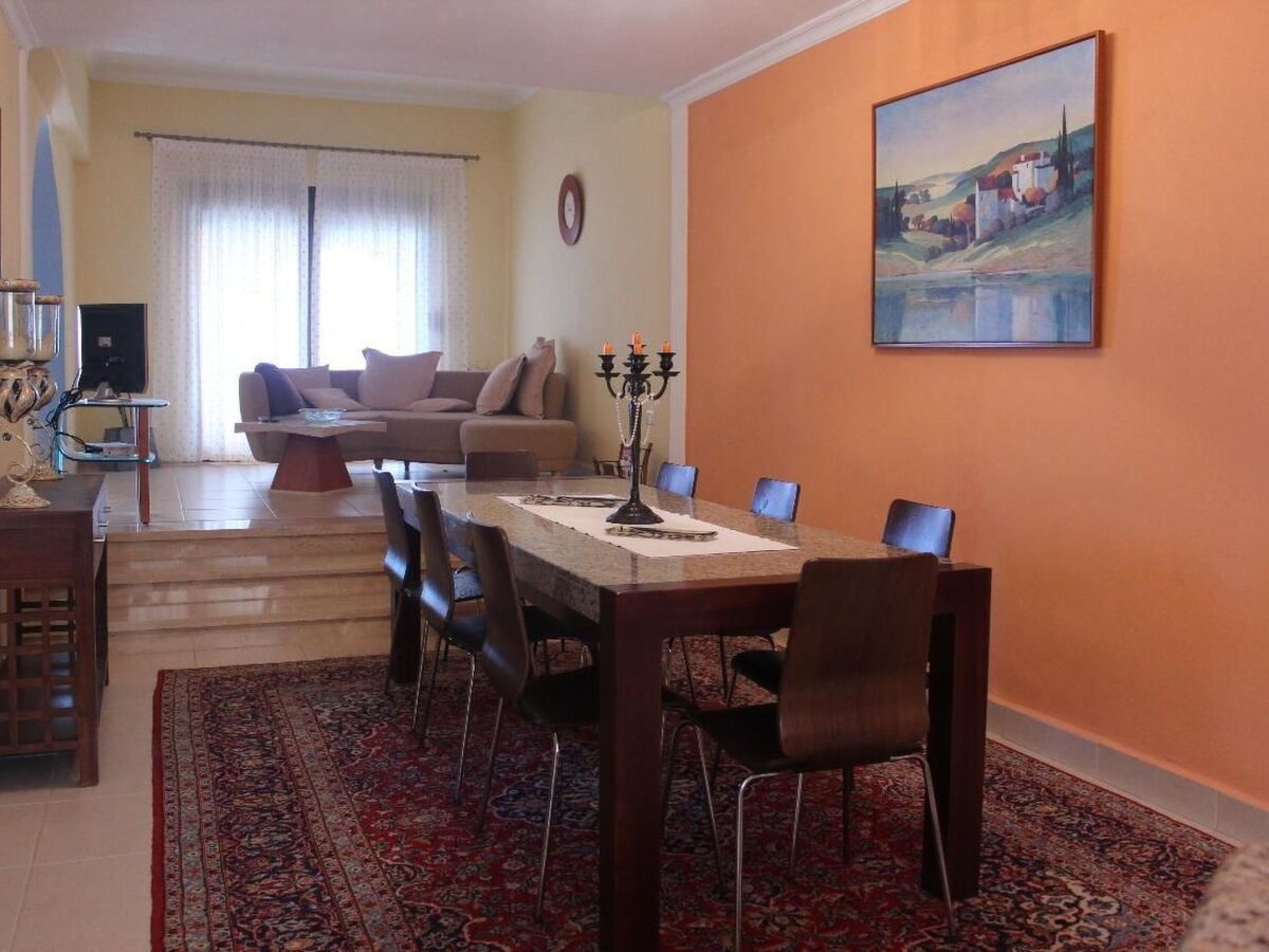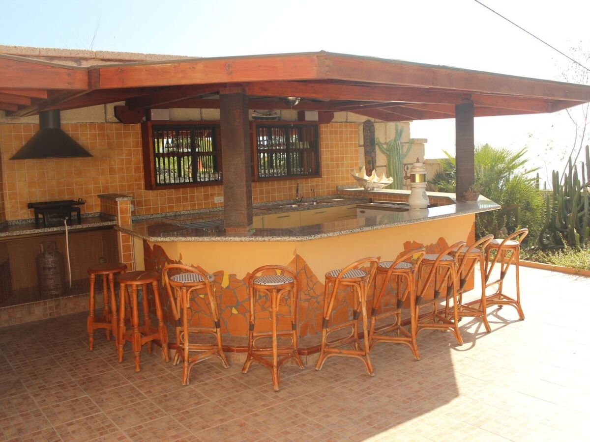 The outdoor area boasts a spacious terrace that stretches the entire length of the living area and is equipped with a pergola and a brick barbecue.