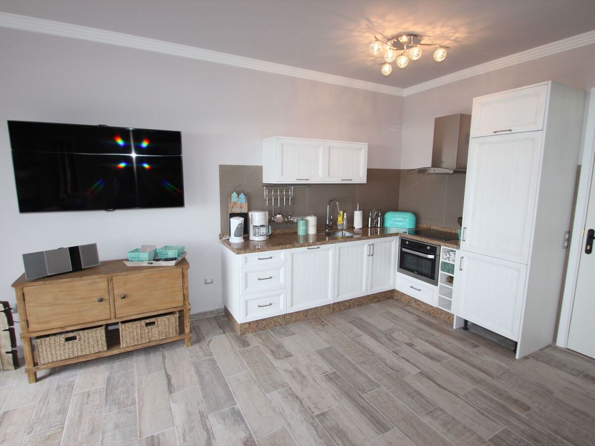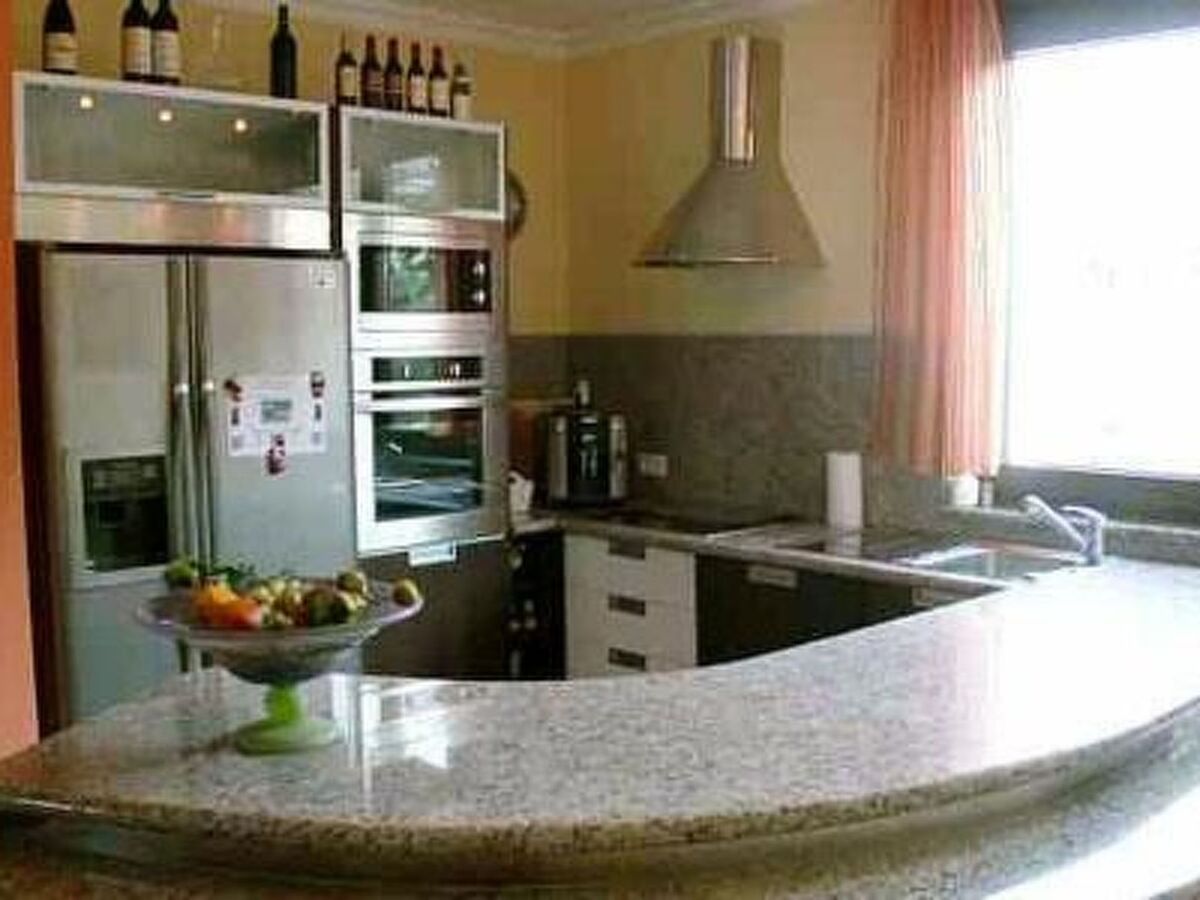 The kitchen has a granite bar and is furnished with a 4 burner ceran stove, an oven, a microwave, a large refrigerator with an ice maker, a dishwasher, a water filter, an espresso maker and more.
