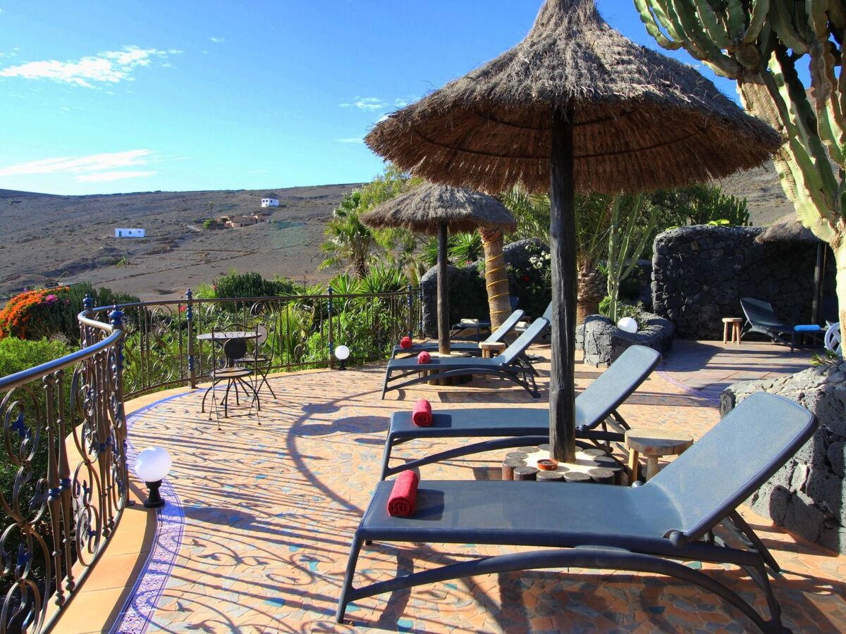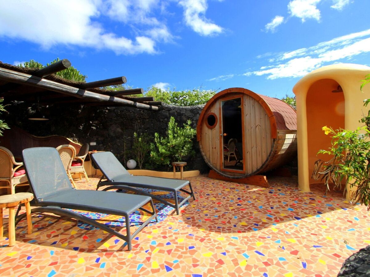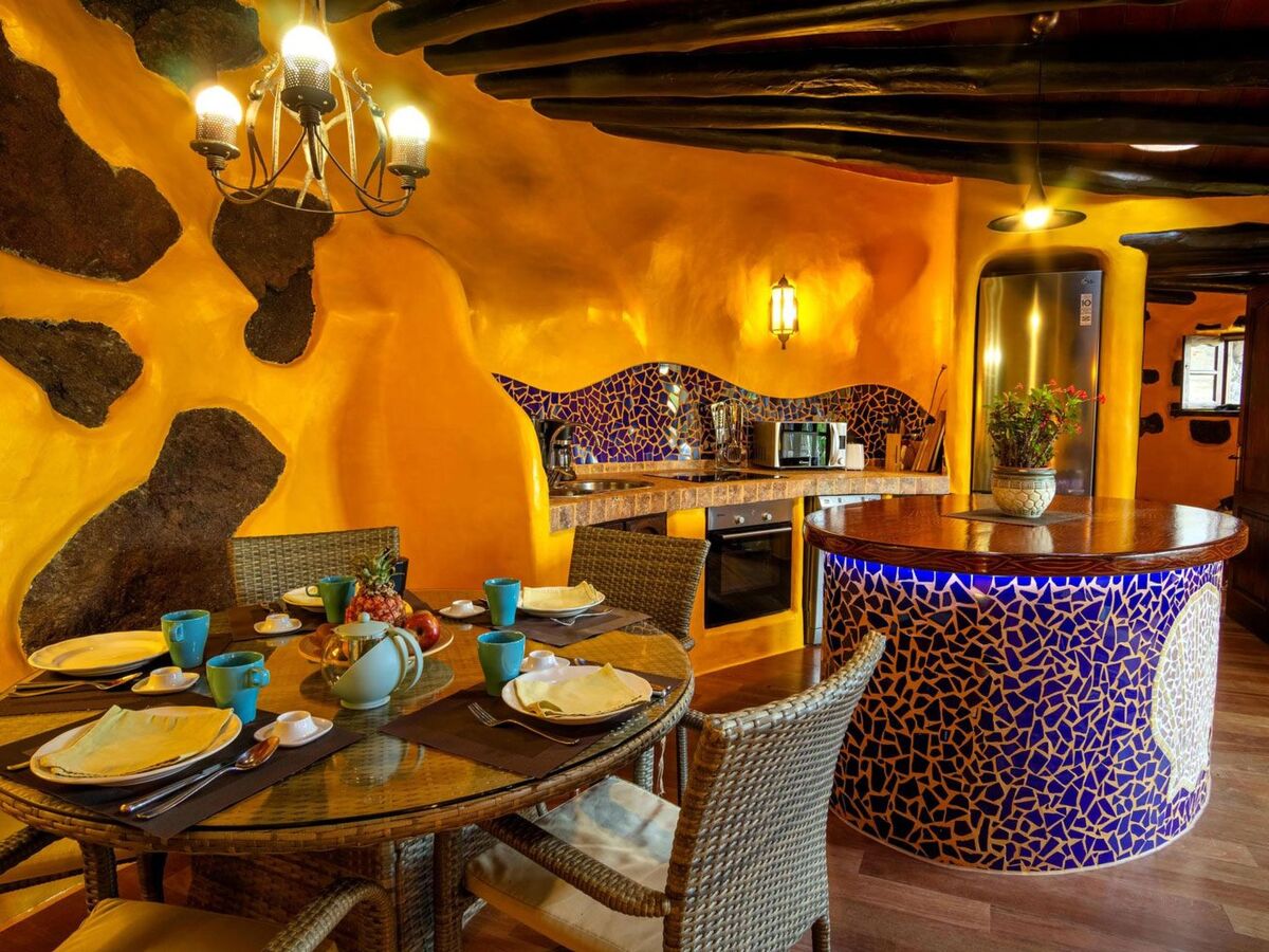 A finca nest to feel at home in with lots of lava stones, high-quality wooden ceilings and floors, warm colours and a very individual interior design that adapts to the spatial conditions.