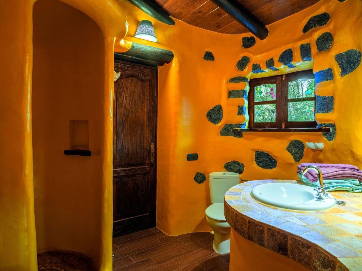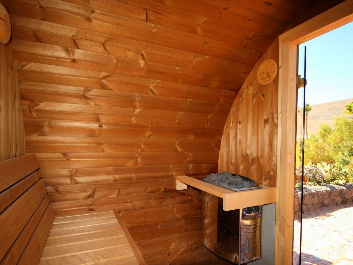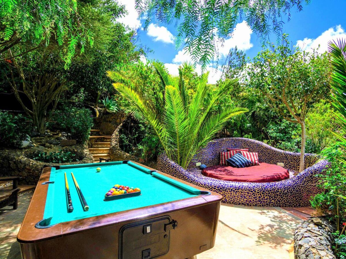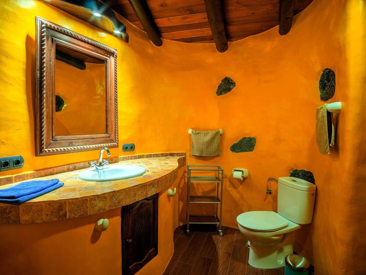 A finca nest to feel at home in with lots of lava stones, high-quality wooden ceilings and floors, warm colours and a very individual interior design that adapts to the spatial conditions.