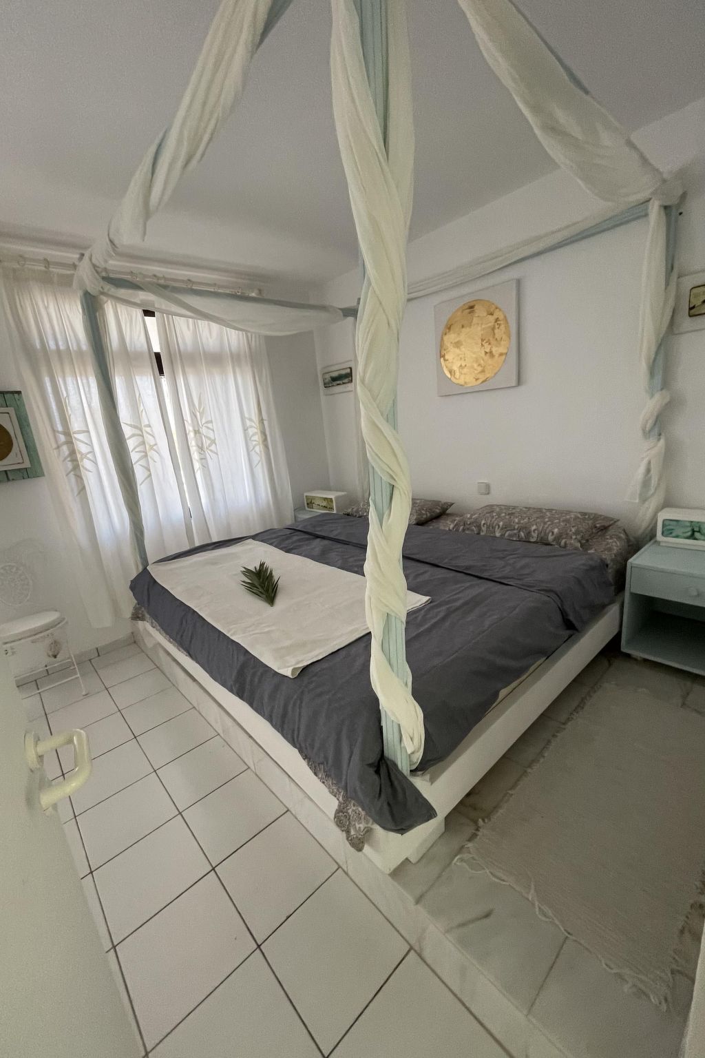 You can sleep wonderfully in a pink and white romantic bedroom with a large (2 x 2.20 m), comfortable double bed with canopy and a luxurious mattress ...