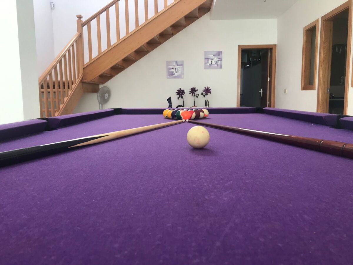 Entertainment and relaxation are provided by the spacious living room with a pool table, a cosy leather sofa and a 65-inch LCD TV with international channels.