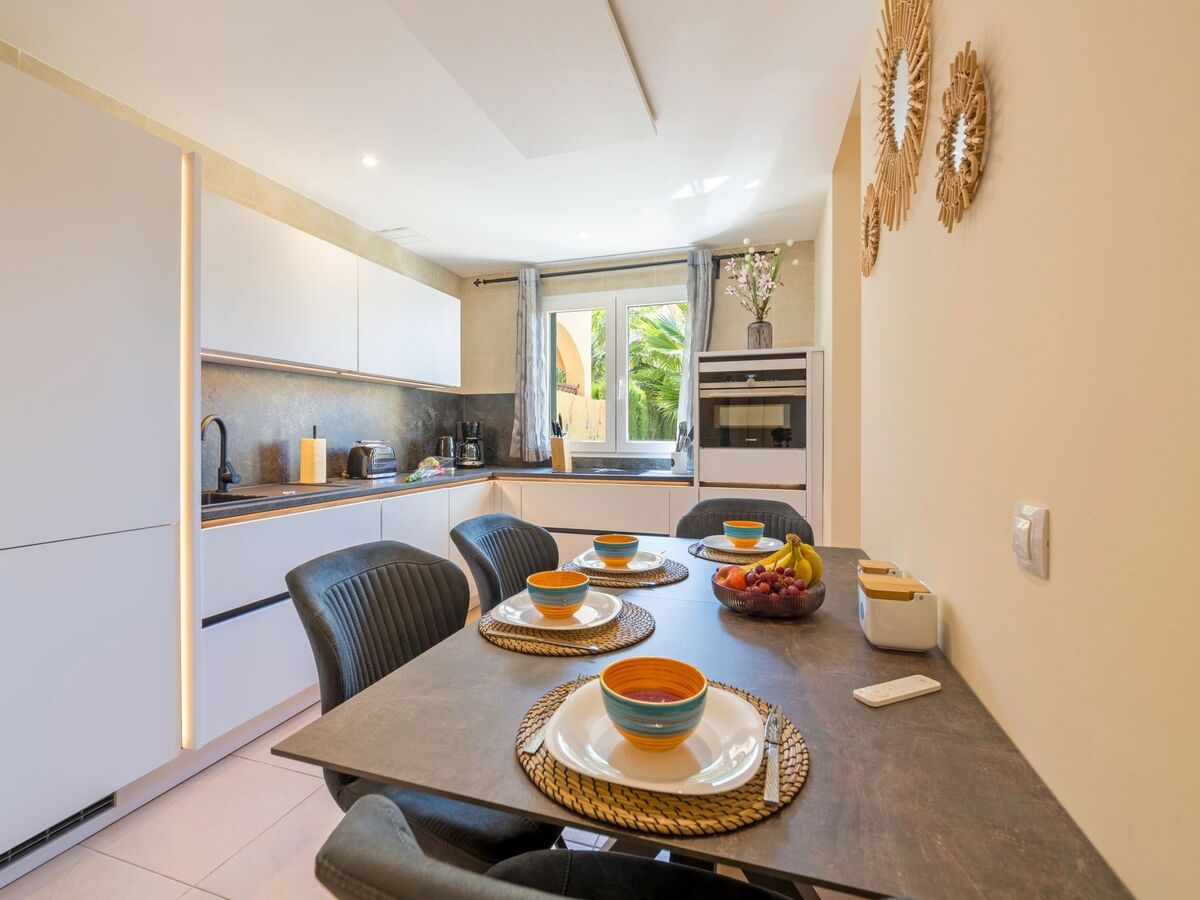 La cuisine moderne est équipée avec lave-vaisselle, grand réfrigérateur avec congélateur séparé, four, plaques vitrocéramiques, cafetière, grille-pain, mixeur et machine à laver.