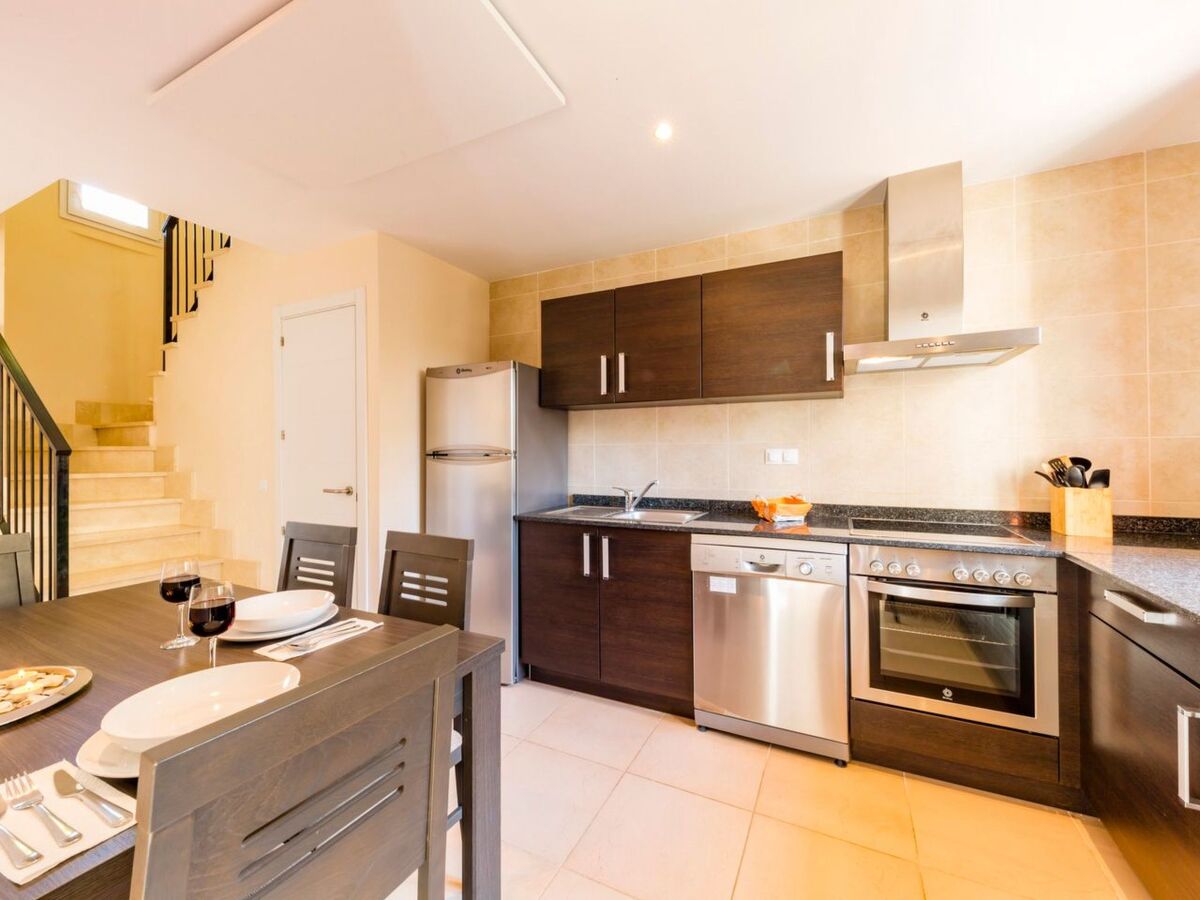 La cuisine moderne est équipée avec lave-vaisselle, grand réfrigérateur avec congélateur séparé, four, plaques vitrocéramiques, cafetière, grille-pain, mixeur et machine à laver.