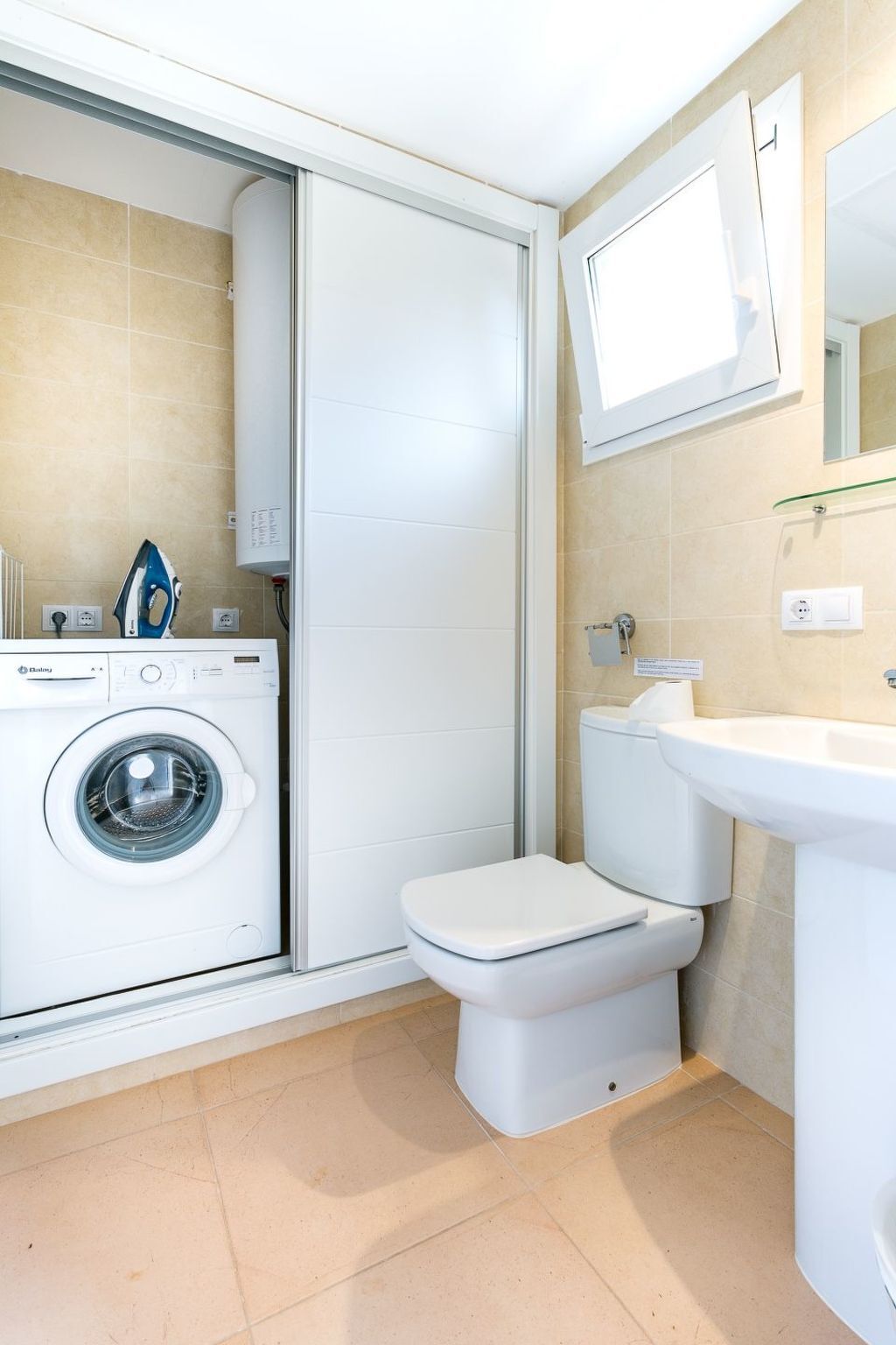 La cuisine moderne est équipée avec lave-vaisselle, grand réfrigérateur avec congélateur séparé, four, plaques vitrocéramiques, cafetière, grille-pain, mixeur et machine à laver.