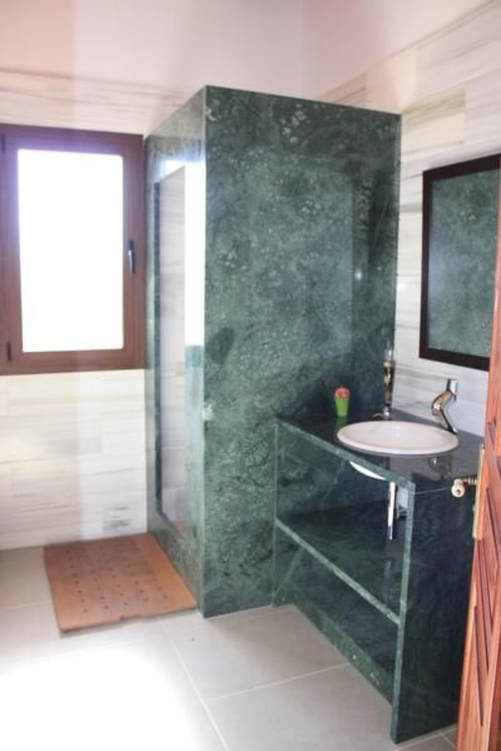 On the ground floor there are four bedrooms and two bathrooms with shower, washbasin and toilet.