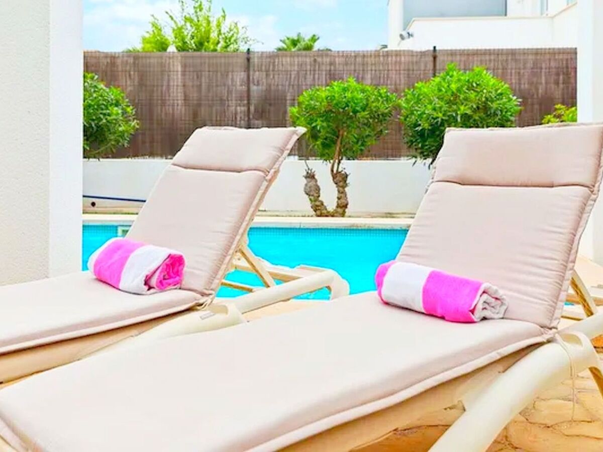 Beautiful detached house in Ibiza style (all in white), each room with plenty of natural light through large, floor-to-ceiling glass doors, which lead directly to the outdoor area and the pool.