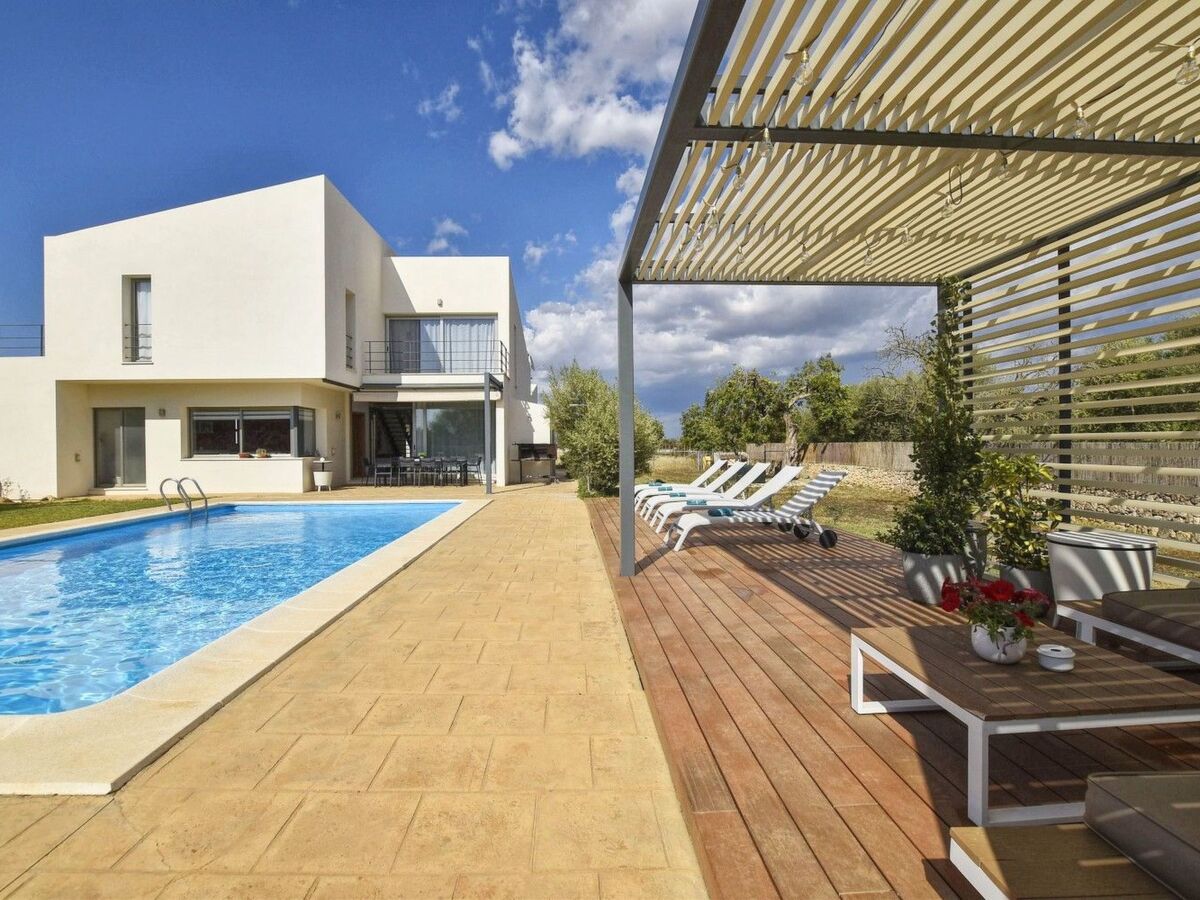 Maison de campagne de construction récente, avec plus de 300m2, de haute qualité et de style minimaliste, située à Binissalem, au cœur de Majorque.